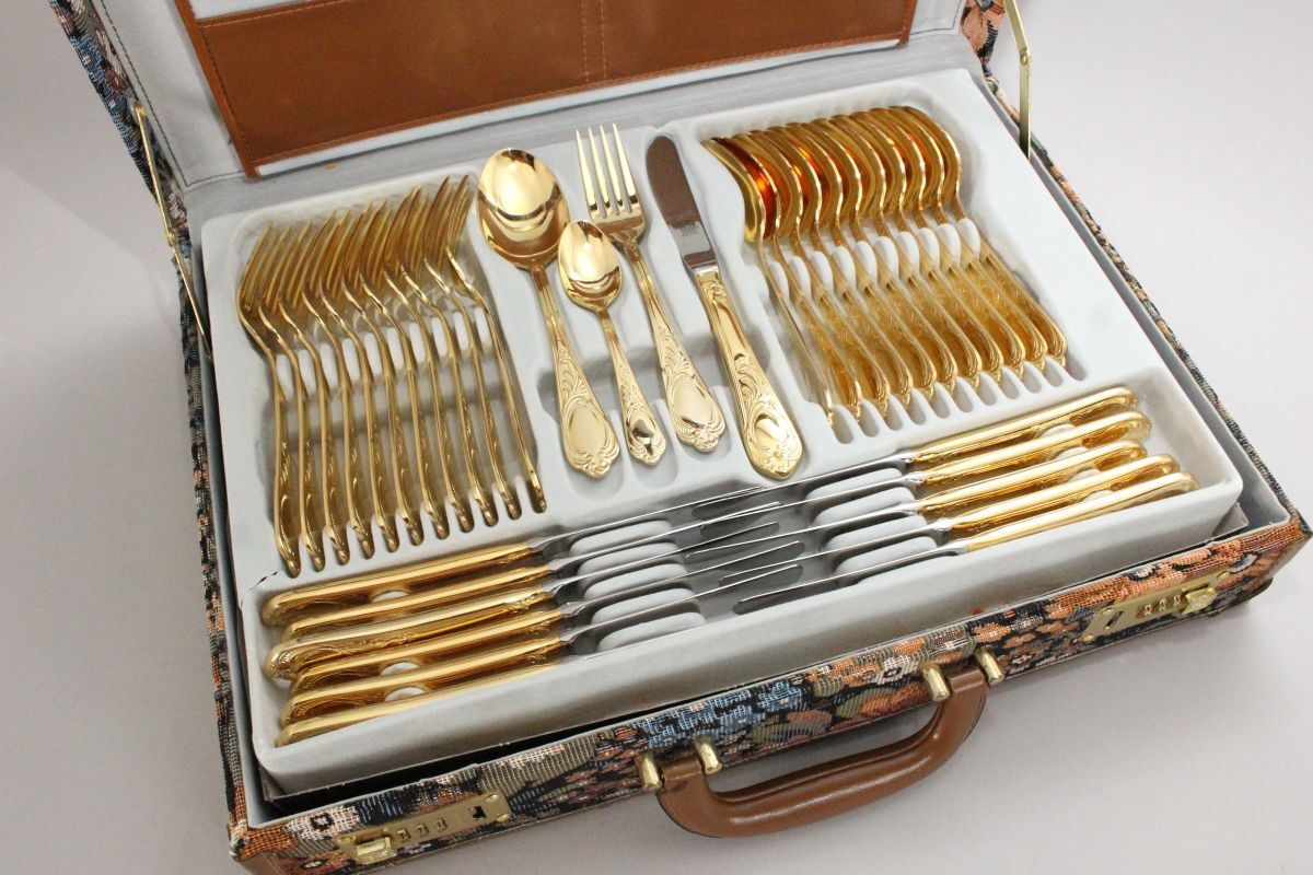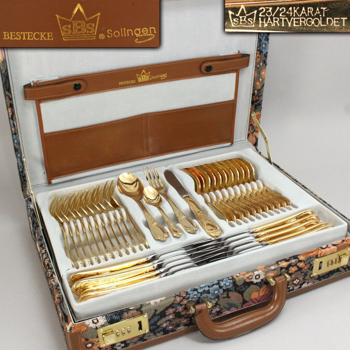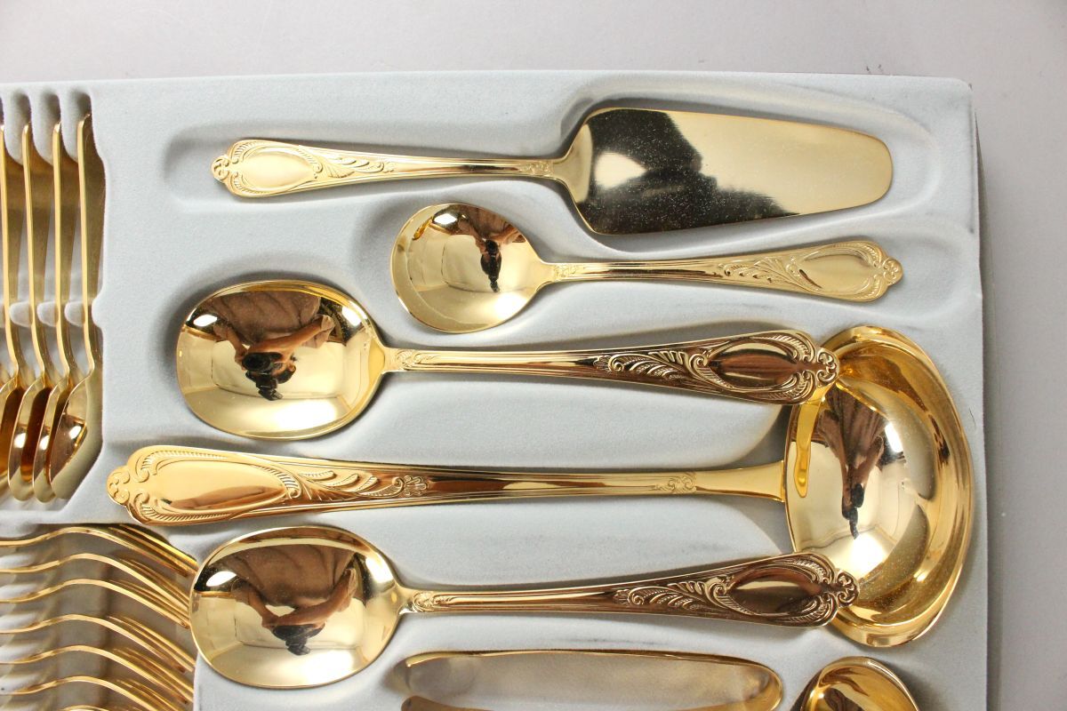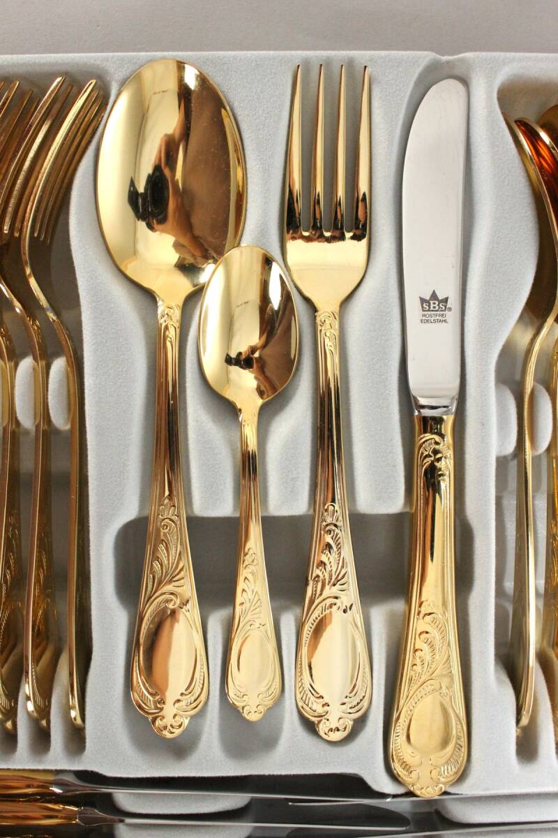 [2335140]SBS ゾーリンゲン Solingen カトラリーセット 12名用70本 23/24 Karat ケース付◆ドイツ製/ヴィンテージ/食器/うぶ品