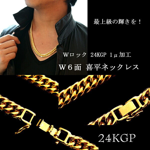 a 24金1μコート Wロック W6面 60cm10mm 極太 喜平ネックレス キヘイ チェーン 限定品 喜平 24kgp