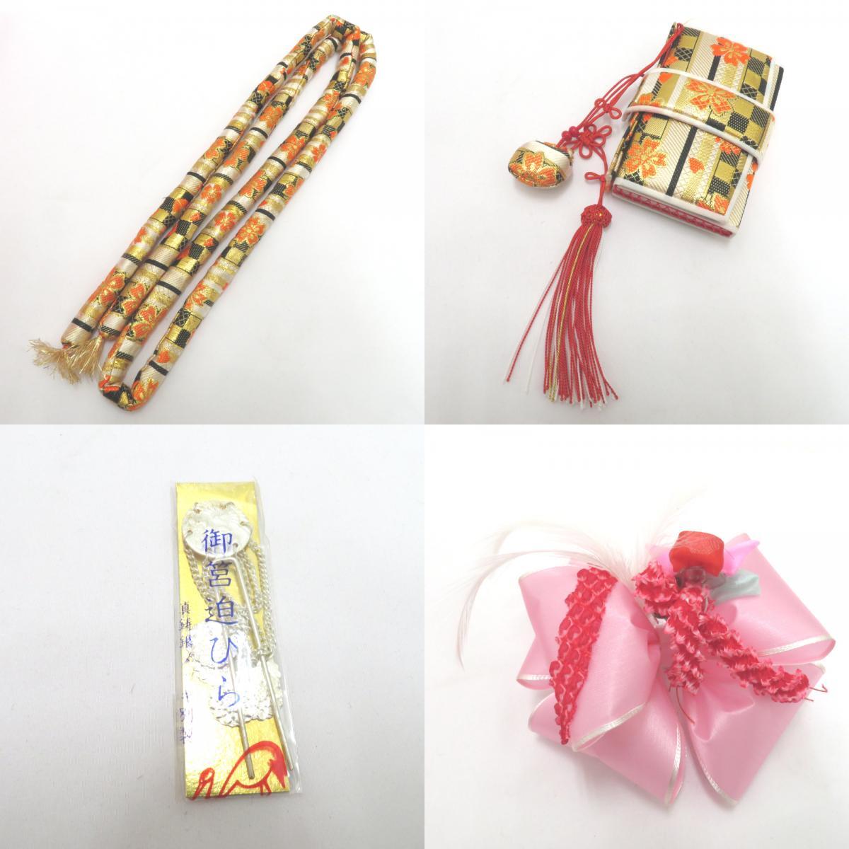 | 商品説明 | 筥迫7点セットです。 草履サイズ:18.0cm 【セット内容】 ・筥迫 ・草履 ・がま口バッグ ・帯締め ・末広(扇子) ・髪飾り ・ビラ簪 | ||