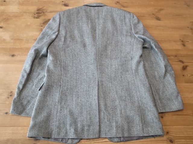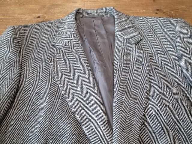 ◆ブランド 「JOE NAMATH」 アメリカ古着 ●サイズ表記 44L 実寸サイズ 2XL(3L)相当 肩幅…47cm(肩先から肩先の間の長さ) 身幅…59cm(両脇を横直線に結んだ長さ) 着丈…81cm(後衿ぐり中央から後身頃裾) 袖丈…66cm(袖付けの肩先から袖先) ※平置き状態での素人採寸ですので、多少の誤差はご了承ください。 ●素材…65%POLYESTER 35%WOOL ヘリンボーンツイード素材 秋冬向き ●色…黒×グレー ヘリンボーンツイード ●ポケット… フラップポケット ●裏地…総裏仕立て ●ベント…センターベント ●製造国表記…ハンガリー ●状態…使用感は少ない美品です。 ★送料 全国一律 700円 佐川急便 (北海道900円 沖縄その他離島1700円) ※複数ご購入の場合、同梱発送可能です。 |