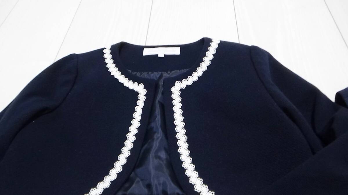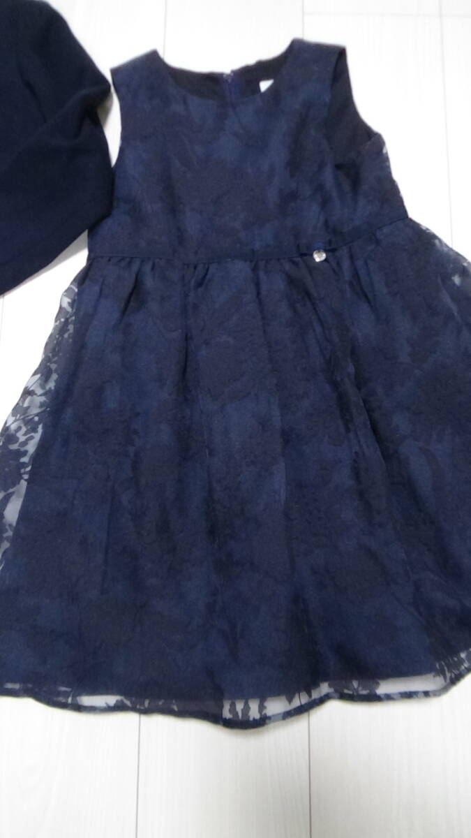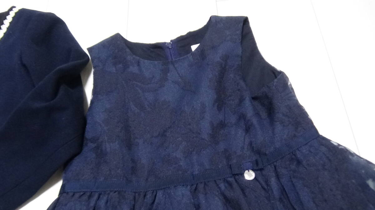 タルティーヌエショコラ(ベベ製)の品、3回着用の中古品です。サイズ表記は120Aで、ジャケットは綿65+ポリエステル35、裏地あり、ワンピースはポリエステル55+レーヨン45、裏地あり紺系。ペットなし、たばこなしで着用に難のある汚れ・破れはありませんが素人の中古品につき細かい見落としはご容赦いただき、ノークレームノーリターンにてお願いいたします。他にも出品です。