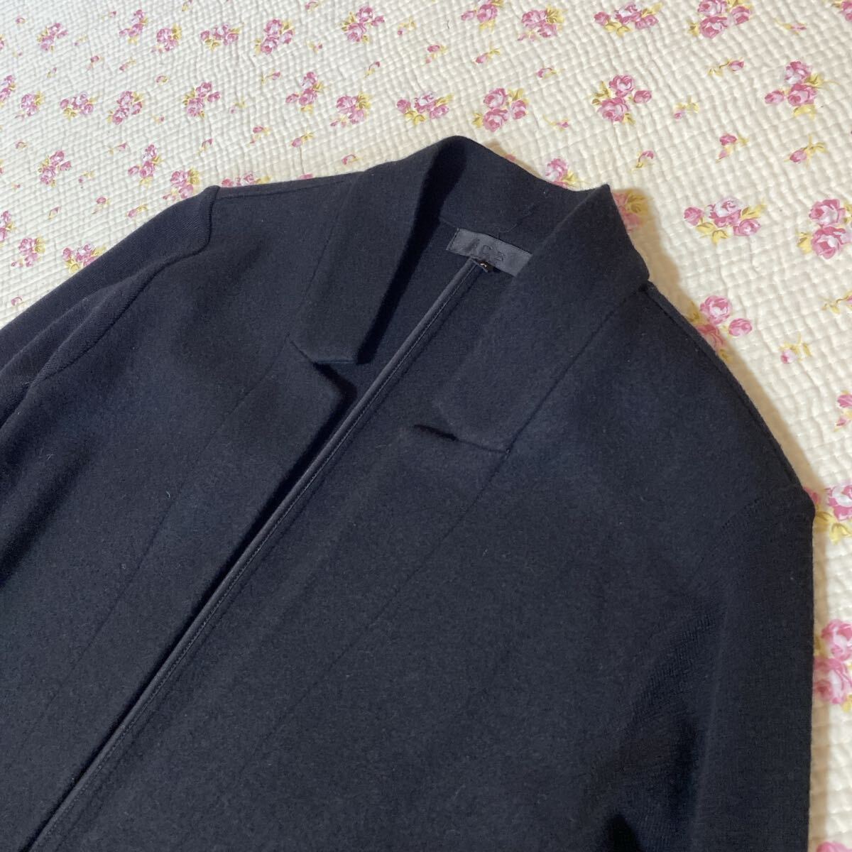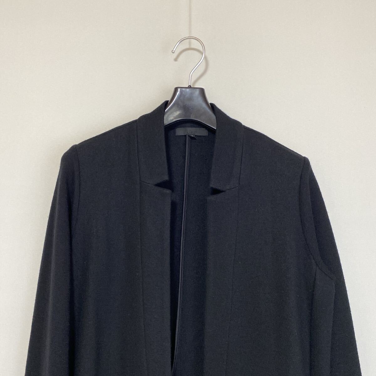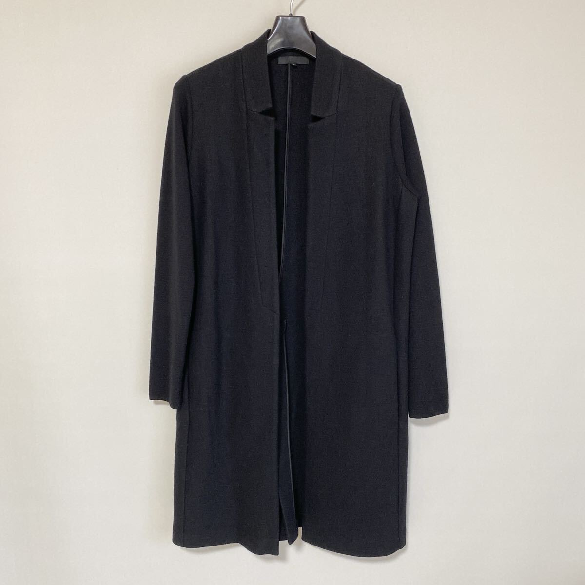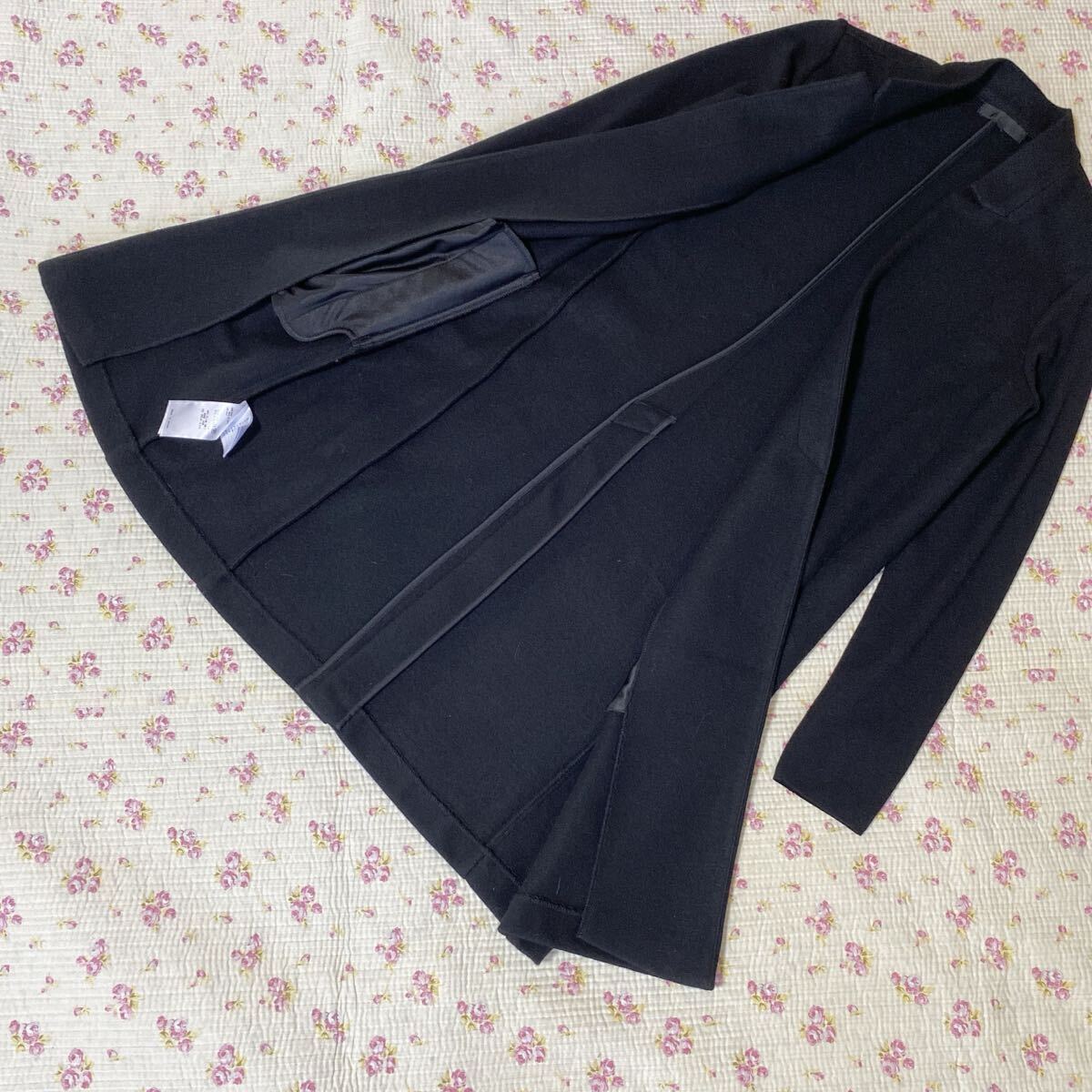 ICB(アイシービー)のお品です。軽量で薄手のノーカラーウールコート(コーディガン)です。身頃はフェルトニットのような感じで腕と編み地が異なって素敵なシルエットです。ノーボタンのオープンタイプのコーディガンでサッと羽織っておでかけできます。オールブラックでちょっとしたフォーマルからオフィス、デニムと合わせてカジュアルにも幅広くお使い頂けます。厚手のロングカーディガンのように羽織るタイプです。お色は画像でご確認ください。黒(ブラック)です。(^^♪ すっきりとした飾らないデザインで、高級感があります。ポケット×2。スリットあり(背面、約36センチ/仕付け糸の付けられたままの新品です)。良質の生地が使われています。完璧なロングコートをお探しの方にお勧めします。