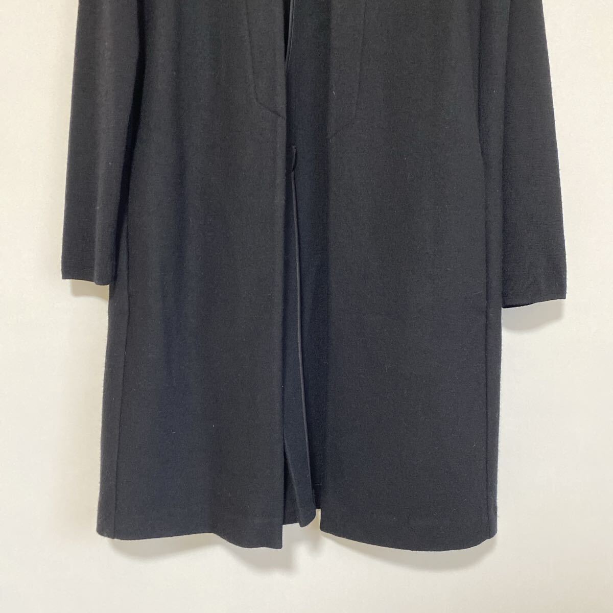 【極美】ICB アイシービー ウール ノーカラー ロングコート 黒 ブラック 薄手 軽量DMW
