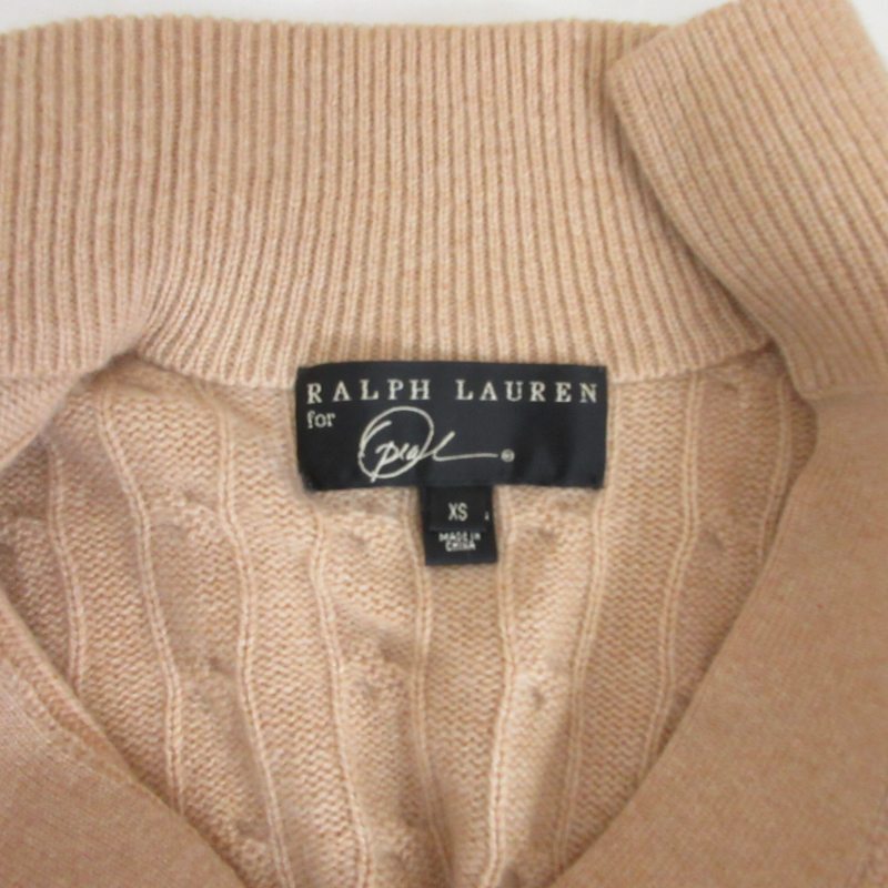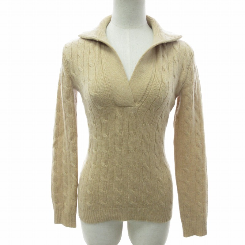 ラルフローレン RALPH LAUREN 黒タグ ケーブルニット カシミヤ スキッパーカラー ベージュ XSサイズ 0423 IBO50 ☆AA★ レディース