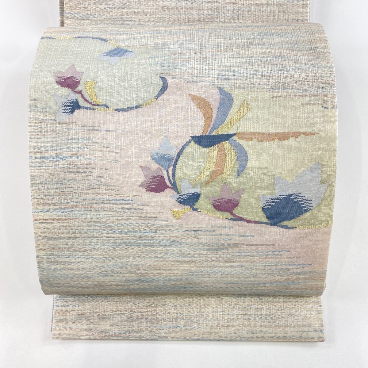 | 袋帯 美品 秀品 夏帯 やまと 草花 金糸 薄小豆 お太鼓柄 正絹 【中古】 |