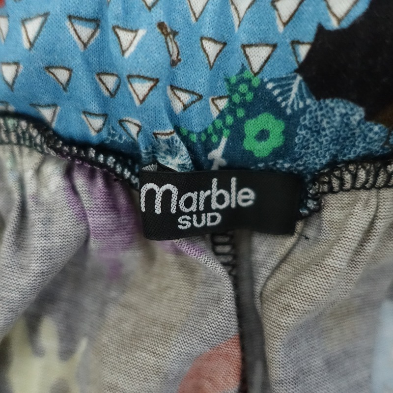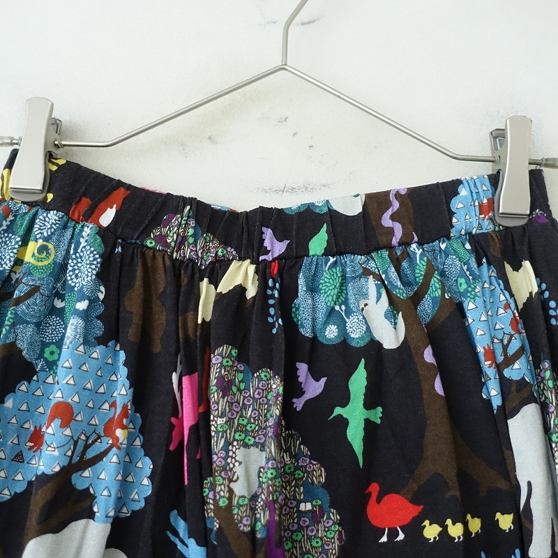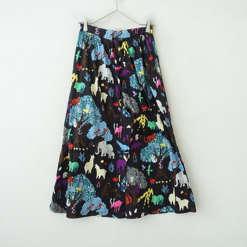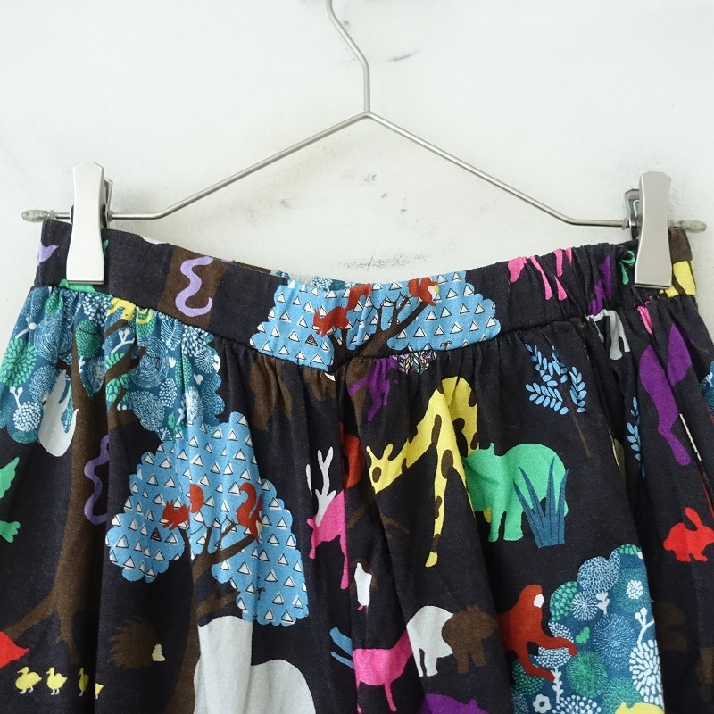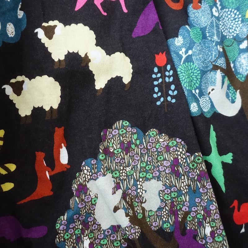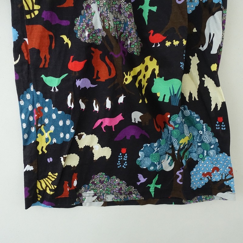 marble SUDのアニマル柄コットンカットソーイージーワイドパンツです。カラーはブラックベースで、カラフルなアニマル達のプリントのカットソー地で仕立てられております。ウエストはゴム&ひも入り、ワイドなシルエットになっており、両サイドにシームポケットが付いております。 |