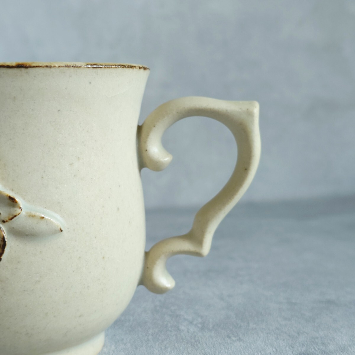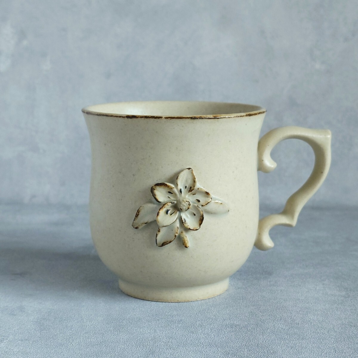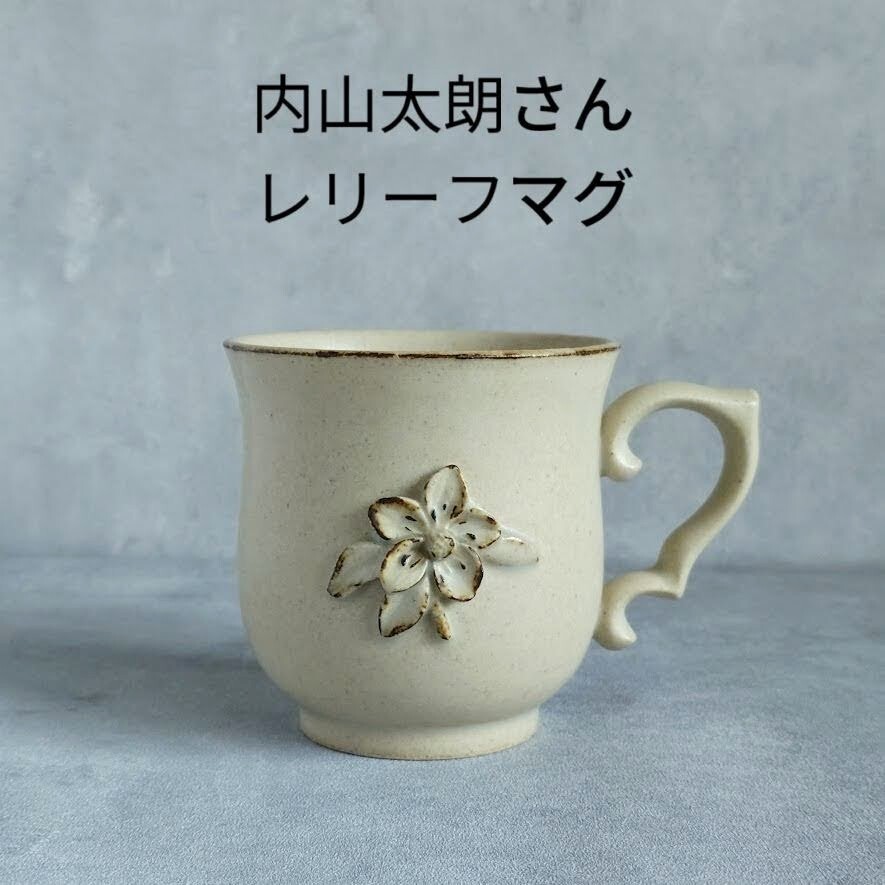【新品】人気作家 内山太朗 さん レリーフマグ アンティーク調 マグカップ フラワーデザイン 人気作家 クリスマスローズ?