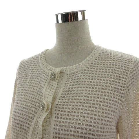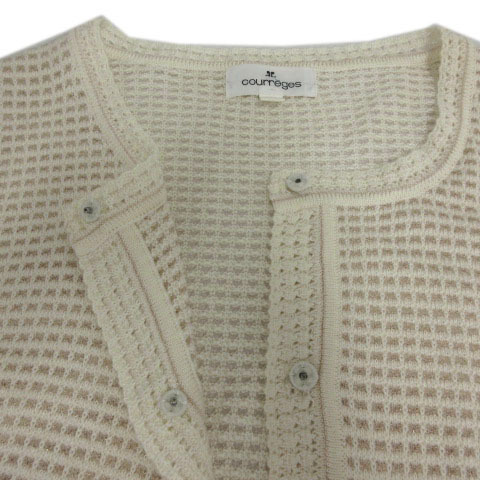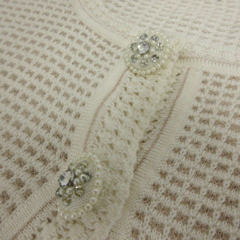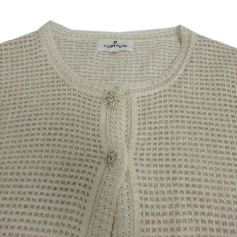 クレージュ courreges ボレロ カーディガン クロップド丈 ラインストーン ビーズ ボタン ミックス糸 ベージュ ピンクベージュ 40