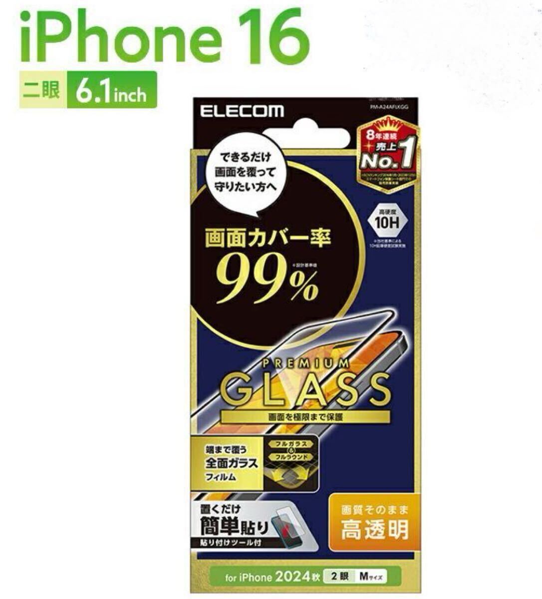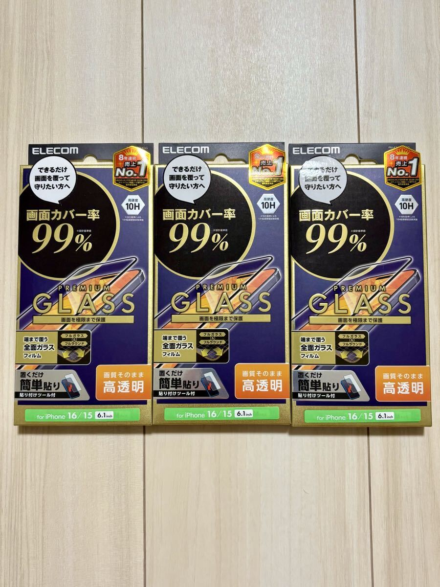【3個セット】エレコム iPhone16/15用 ガラスフィルム フルカバー