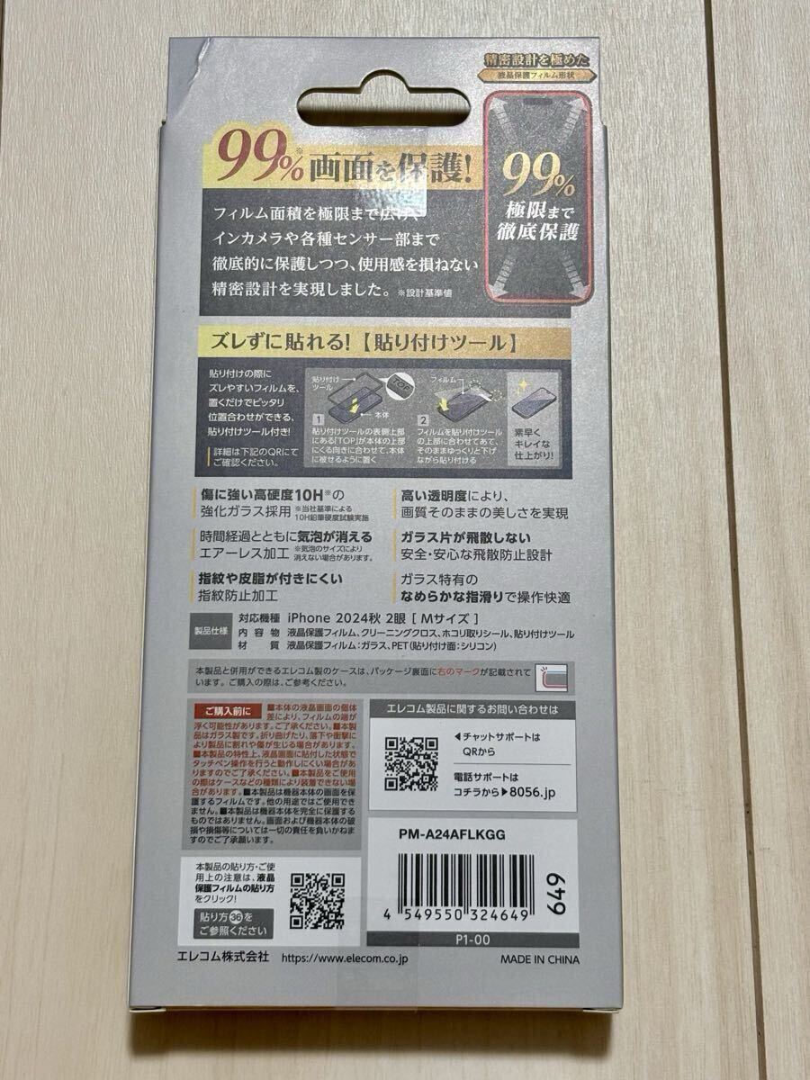 画面カバー率99%。超極み設計を採用した画面保護ガラスフィルムです。ぴったり位置合わせできる貼り付けツール付きです。