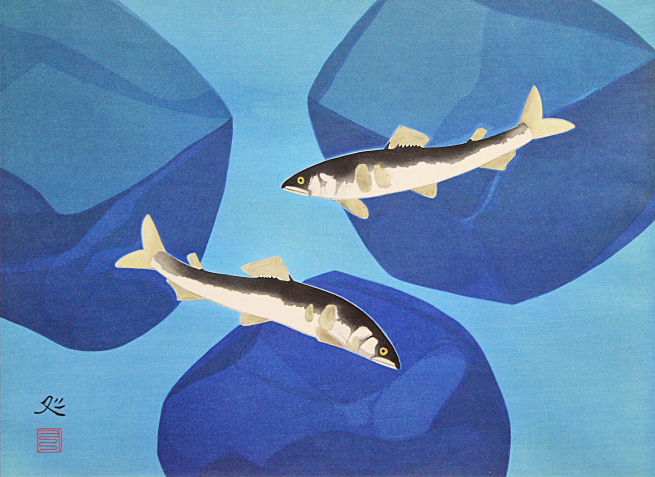 ■★加山又造 【游】 アダチ版画研究所 木版画 刷込みサイン エディション有り