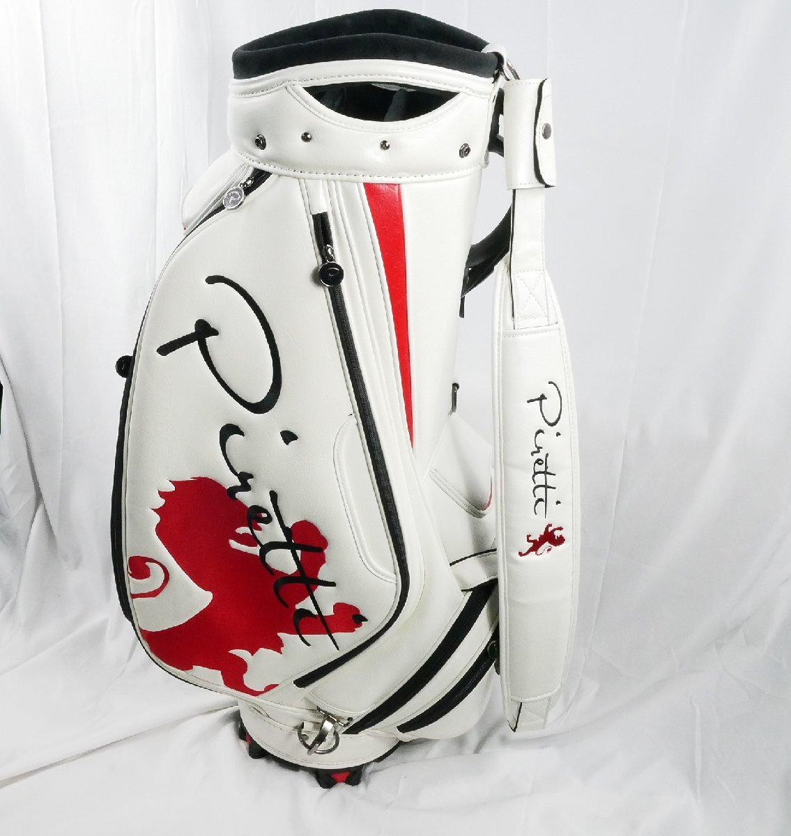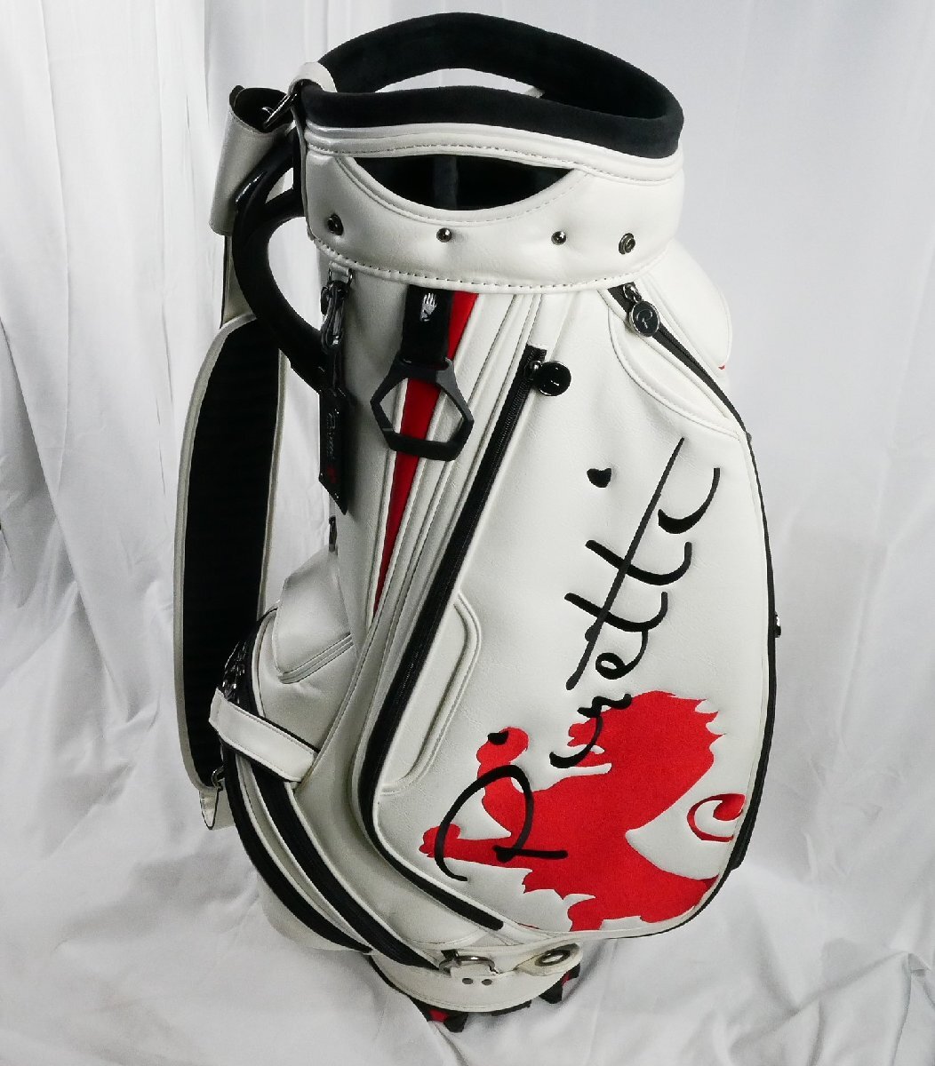 Piretti Cart Bag PR-CB0008 White 9インチ ピレッティ ホワイト カートバッグ キャディバッグになります。 ★ サイズ: 9インチ ★ 素 材: 合成皮革 ★ 重 量: 5.1kg ★ 付属品: フード(未使用)・ネームプレート ★ 口 枠: 5分割 ★ カラー: White 状態:若干のスレや汚れがございますが比較的きれいな状態になります。 ※店頭での販売も行っておりますので、万が一品切れの場合はご容赦下さい。 お気軽にお問い合わせ下さい。~ 0283-86-7828 ~ 激レア商品につき、この機会をお見逃し無く! | ||
