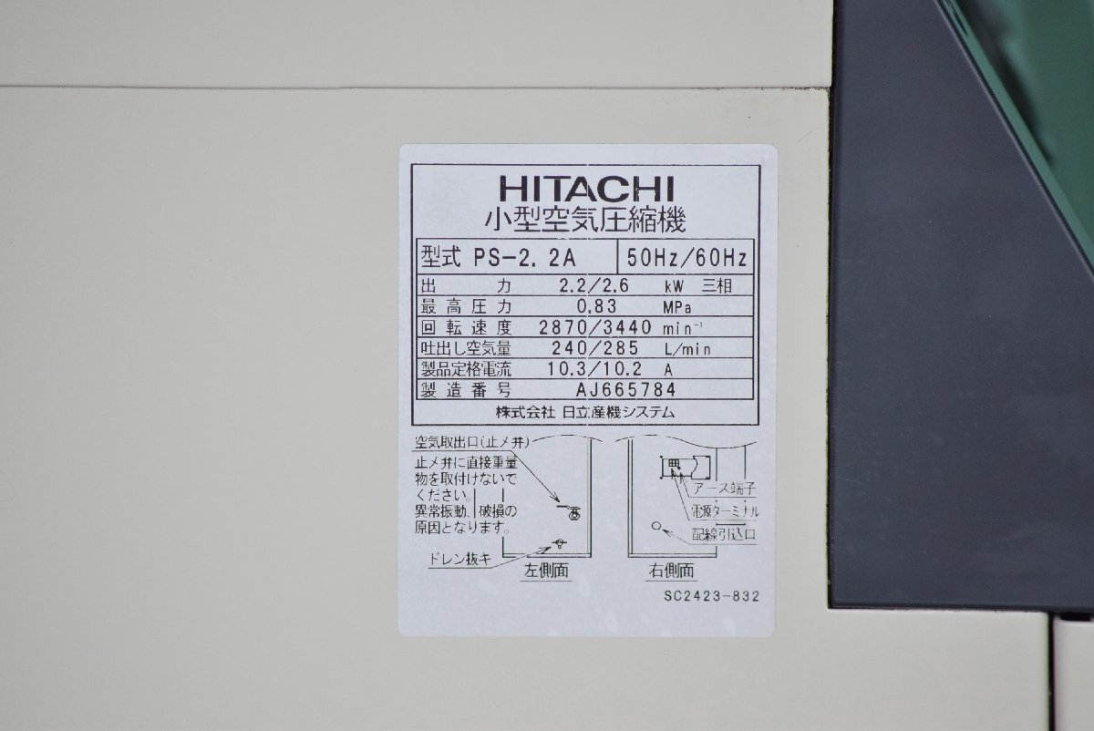 値下げ【日立】スクロールコンプレッサー PS-2.2A 2.2/2.6kW 3馬力 50/60Hz 200V 動画あり 点検、清掃済み!!三重県