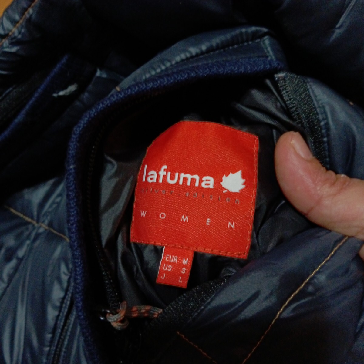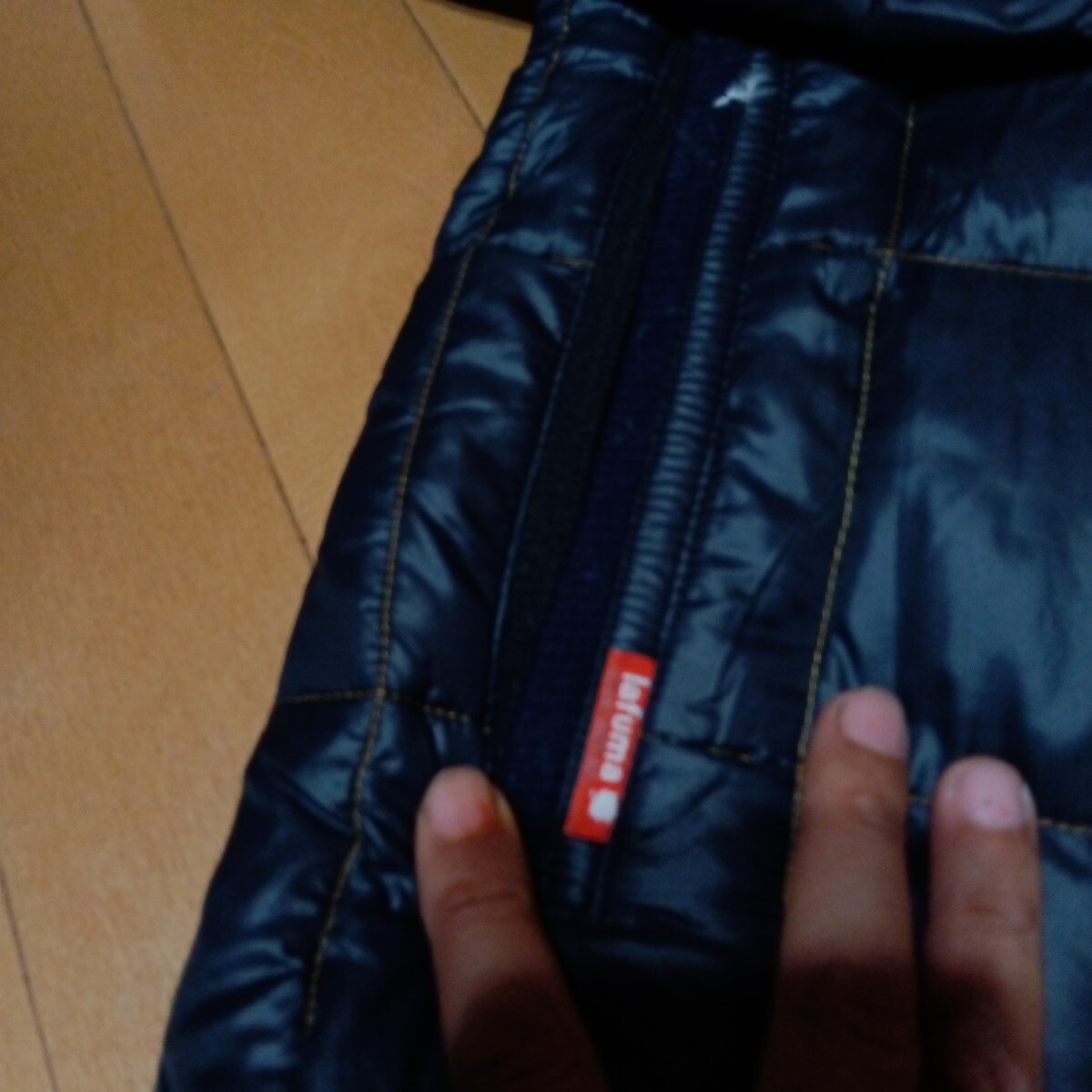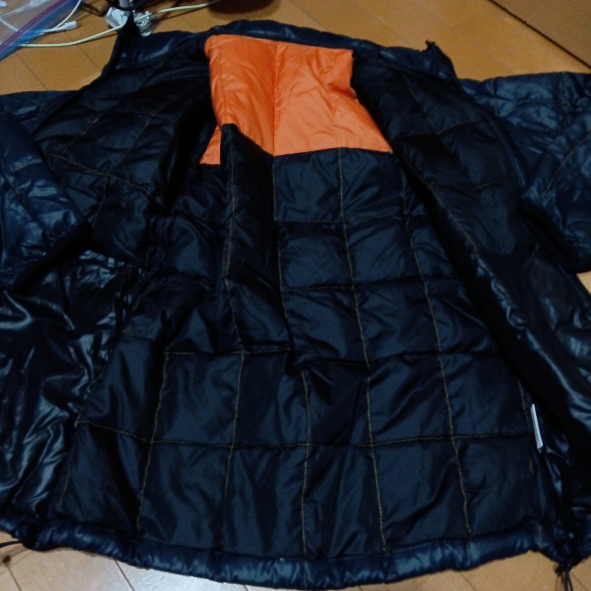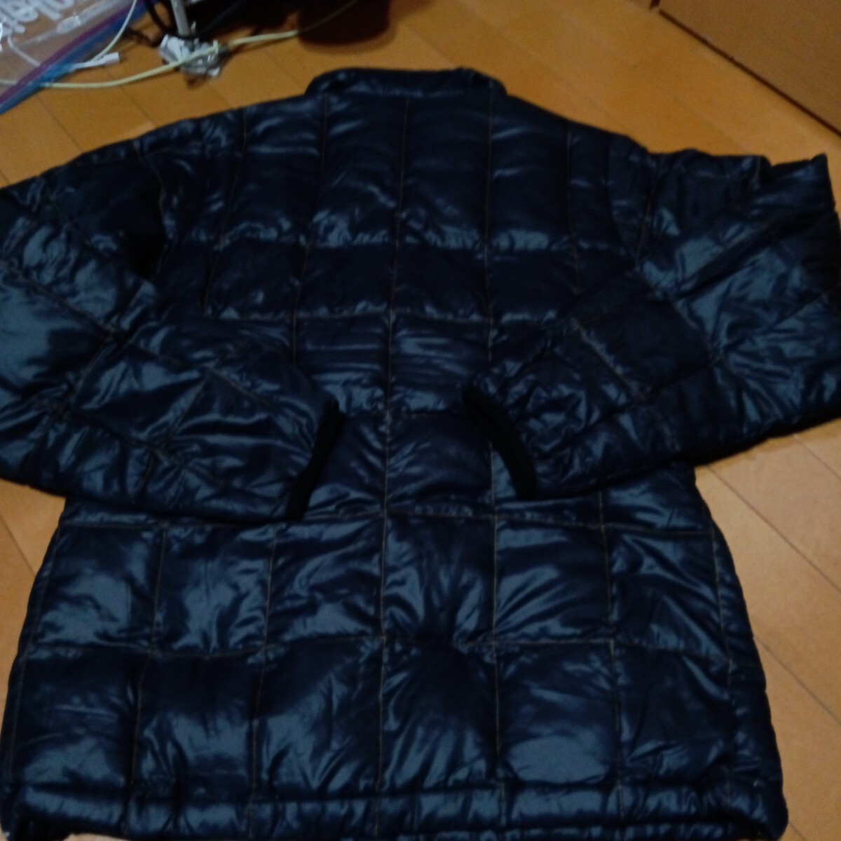 使用感ございます。特にダメージや目立つ汚れございません。サイズ表記L レディース 実寸 平置き41センチ 身幅51センチ 着丈67センチ 色紺 ダウン フードは欠品しています。