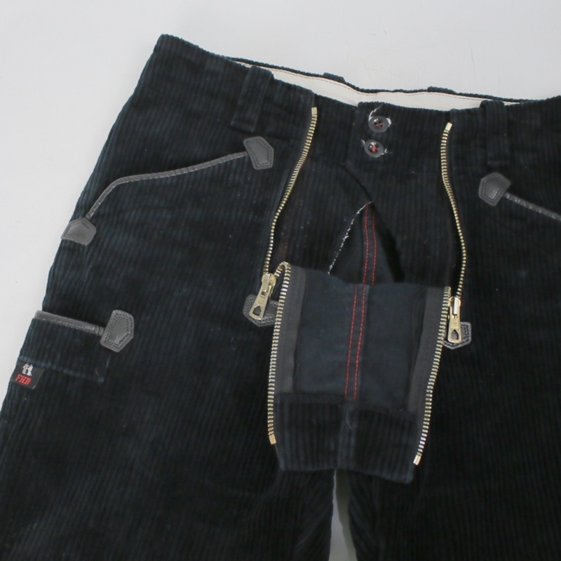グローブ着用時でも上げ下げできるよう、普通のパンツよりも大きなジップで、急所を守るため左右2本になっているのが特徴です。