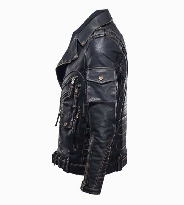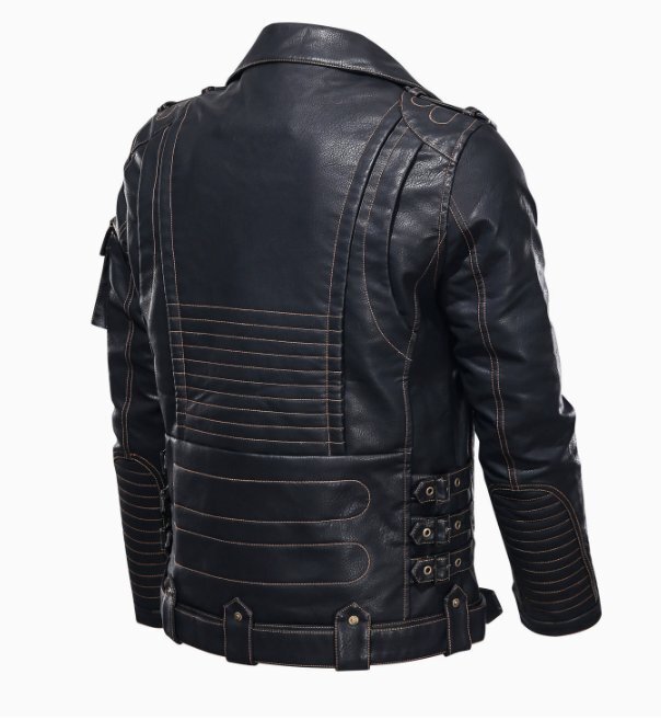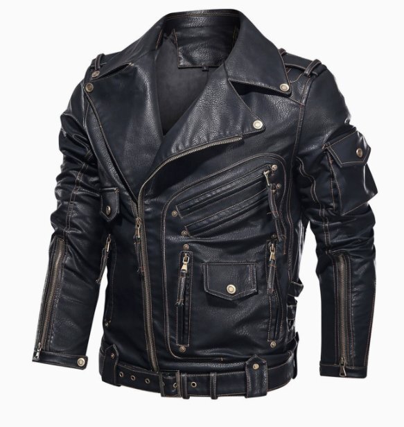 2025年の新型の紳士服の革のコートの欧符号机関車の多ポケットタフな男のpu皮襟を返して皮春秋装L