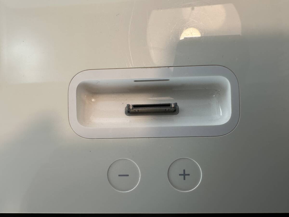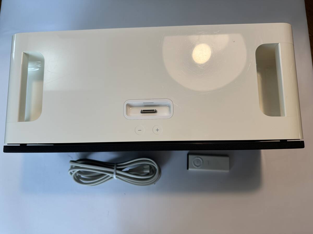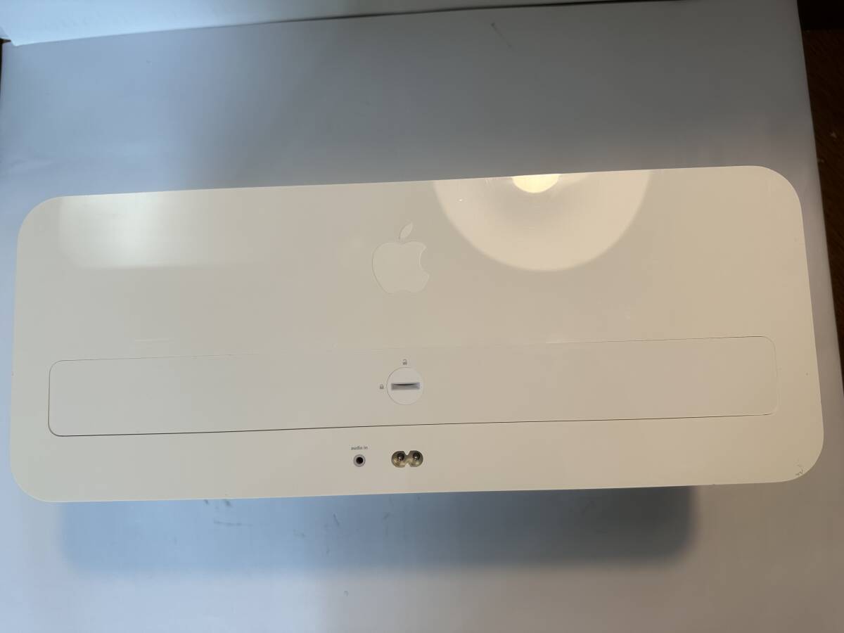 【商品説明】数多くあるオークションの中から、私のオークションにお立ち寄り下さいまして誠にありがとうございます。迅速・丁寧をモットーに掲げ、心を込めてご対応お取引をさせて頂きますので、どうぞ宜しくお願いいたします。今回の出品商品は前出に続き2台目の『Apple アップル 希少品 iPod Hi-Fi純正スピーカー 動作品 中古美品』です。前出の商品と同じく、10年ほど前に当サイトで落札した物になります。当該商品も購入後通算2~3年程使用しましたが、その後は1台目と同様室内保管状態でした。今回の商品は3台の内の1台で、比較的状態が良く使用期間も短い個体になります。ただ、前出の個体に比べますと目立つような大きなキズは少ないものの、画像3を見て頂くとお分かりになると思いますが、iPod コネクター周りに少々気になるような線キズが見受けられます。再生音には全く影響ありませんが、気になる方はご遠慮くださいませ。また、色あせ部分もなく、経年を考えますと全体的にとても綺麗な状態で、間違いなく『美品』の部類に入るものと確信しています。また、どのパーツをとっても今のところ劣化は見られません。音自体も、小型のスピーカーから出ているとは思えない程豊潤で、長時間聞いていても全く疲れません。『百聞は一見に如かず』ですので、是非音を聴いてみて貰いたいと思います。付属品は、純正電源ケーブルと純正リモコンA1156です。ご興味がおありの方、またお探しの方この機会に如何でしょうか?