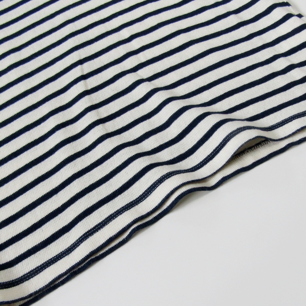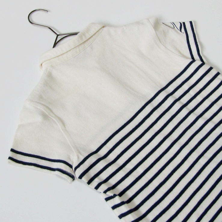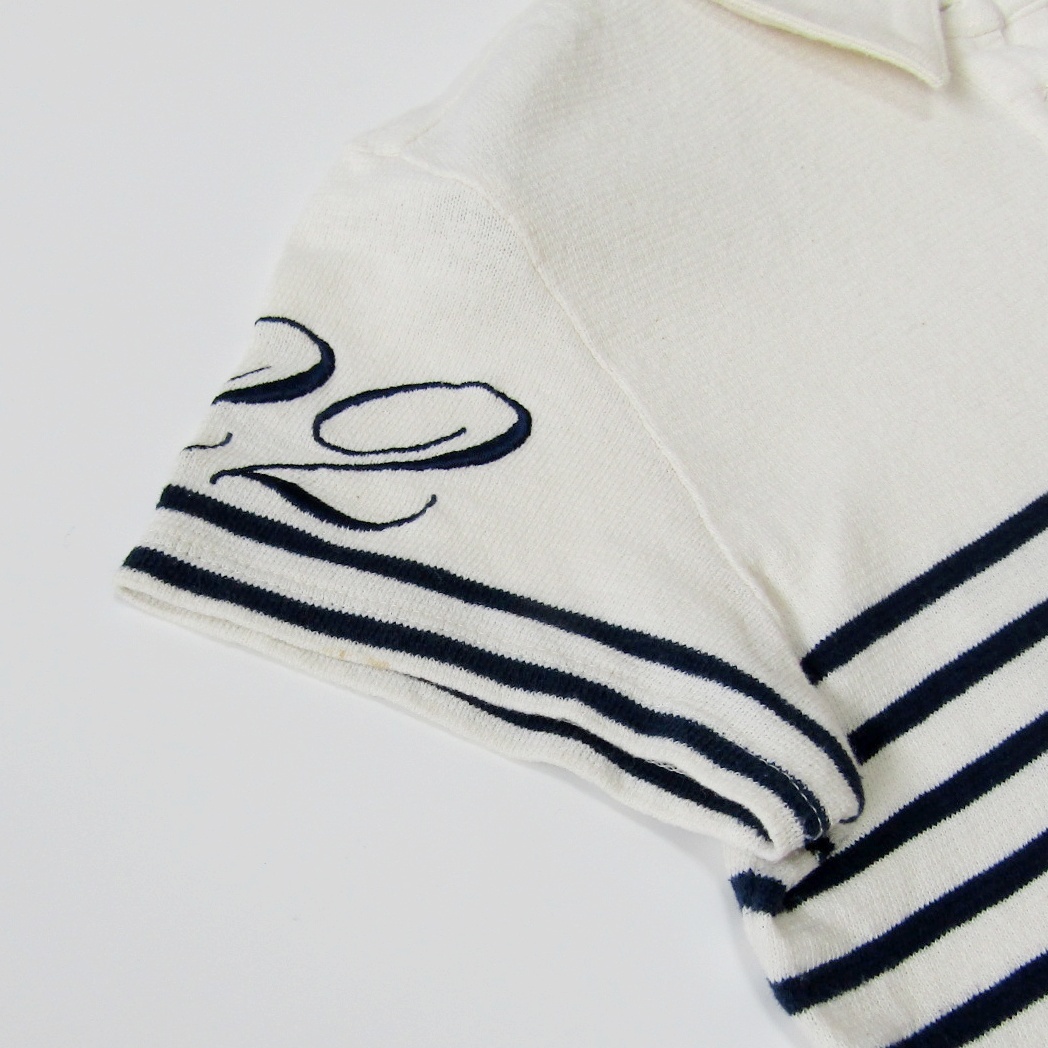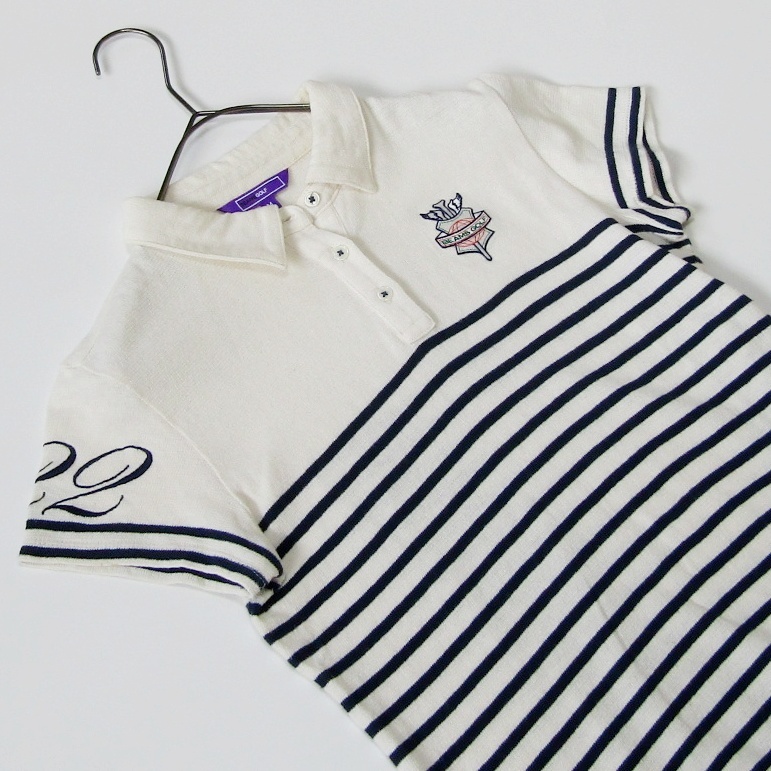 オフホワイトをベースにしたネイビーボーダー柄が爽やかで、大人のカジュアルゴルフスタイルを演出してくれる一枚。