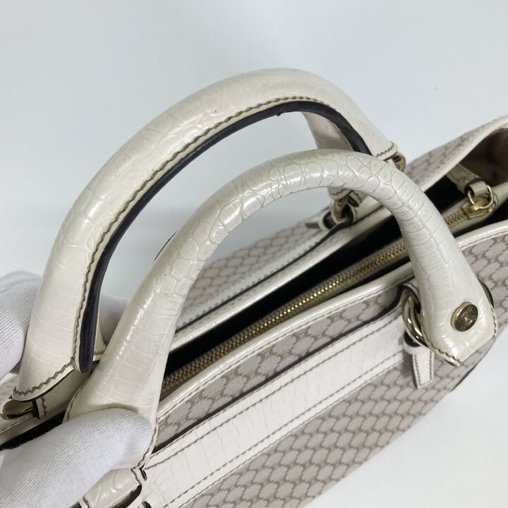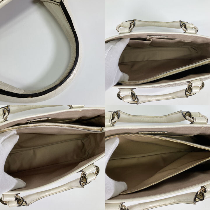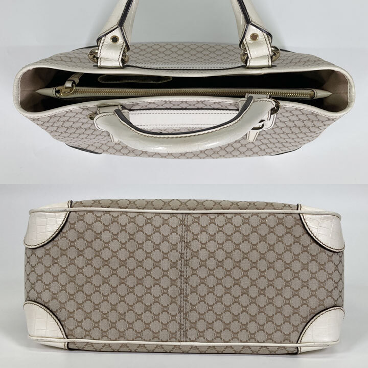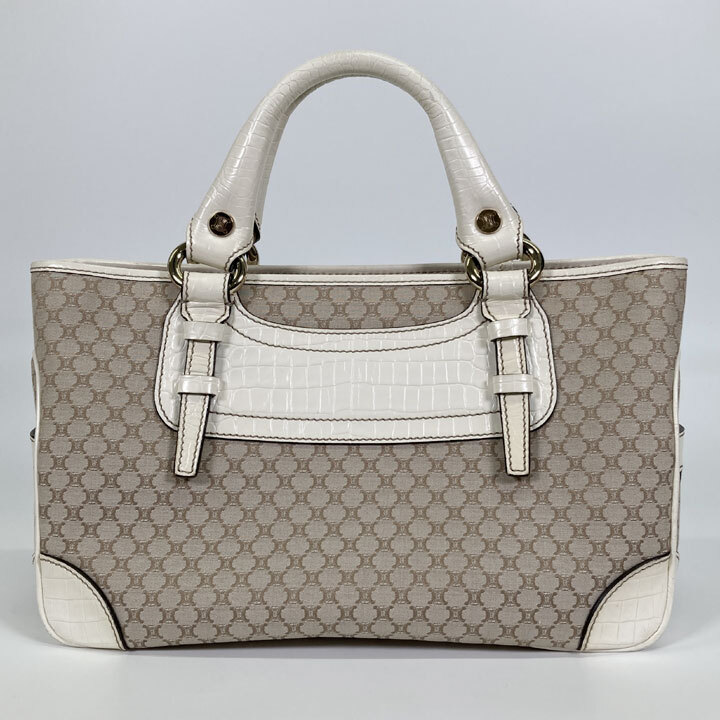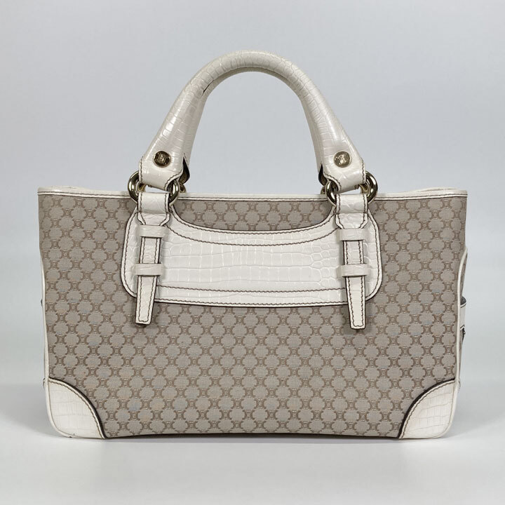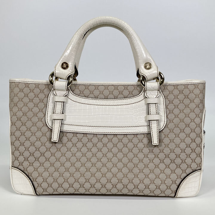ハンドバッグ キャンバス レザー ベージュ ホワイト
