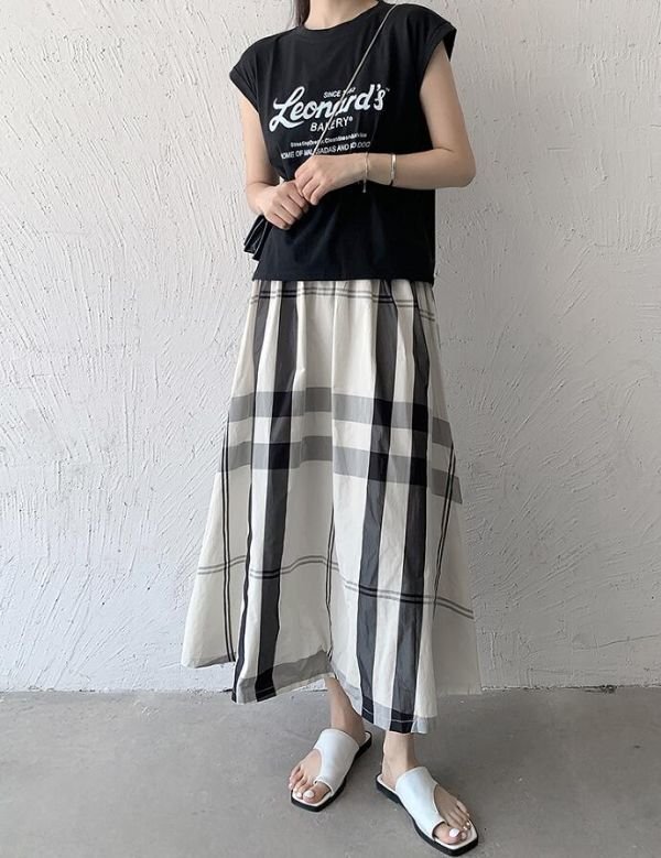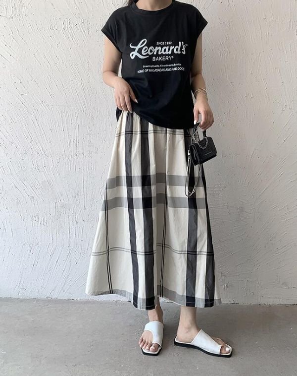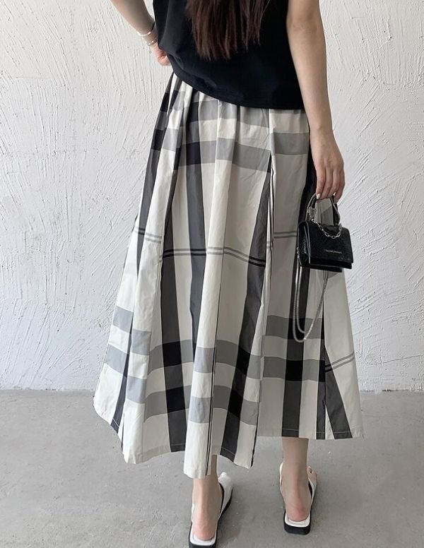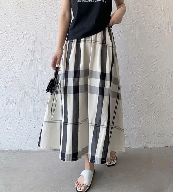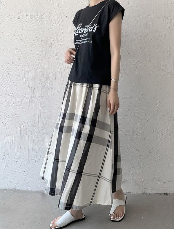 スカート ロング丈 今季新品 チェック柄 フレアスカート レディース マキシ丈 ボトムス 大人★カーキ /Lサイズ