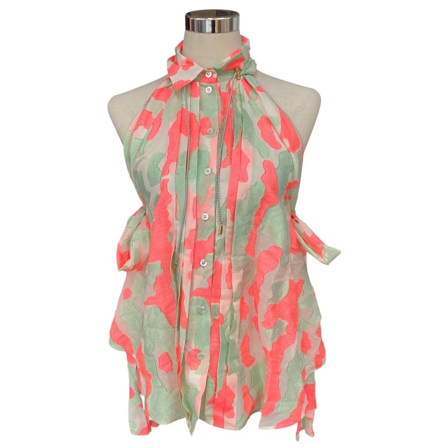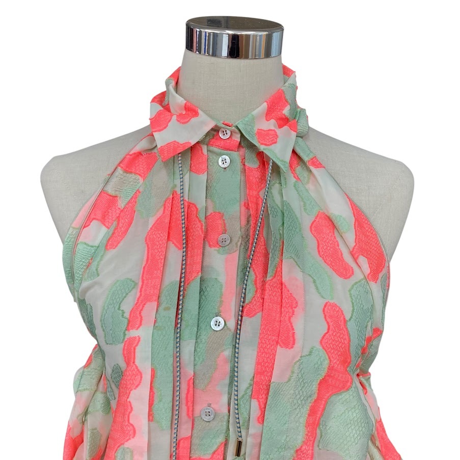 【ITUGY739SUFA】LOUIS VUITTON ルイヴィトン ノースリーブ チュニック ブラウス トップス サイズ36 ピンク グリーン