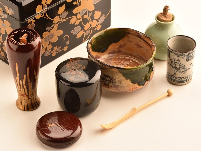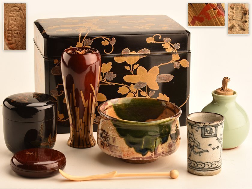 サイズ | 茶箱 幅 約17.5×11.0cm 高 約12.0cm 茶碗 幅 約9.0×9.0cm 高 約5.5cm 棗 幅 約6.0×6.0cm 高 約6.5cm |
