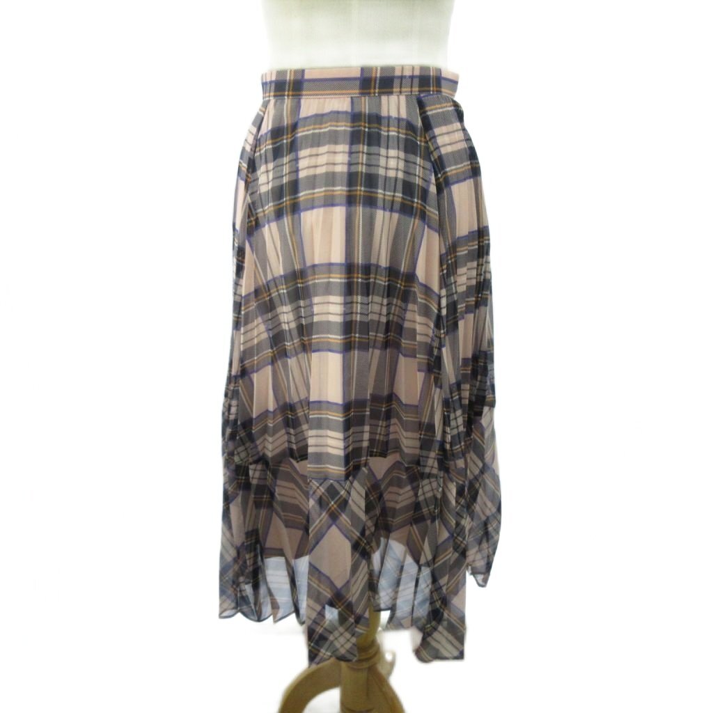 未使用品 アプワイザーリッシェ Apuweiser-riche タグ付き プリーツスカート チェック柄 ロング丈 1 ピンク系 0910 レディース
