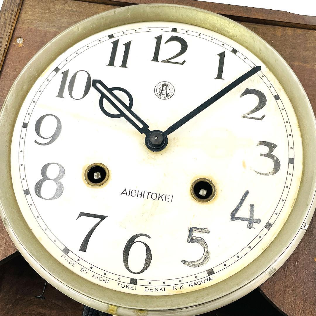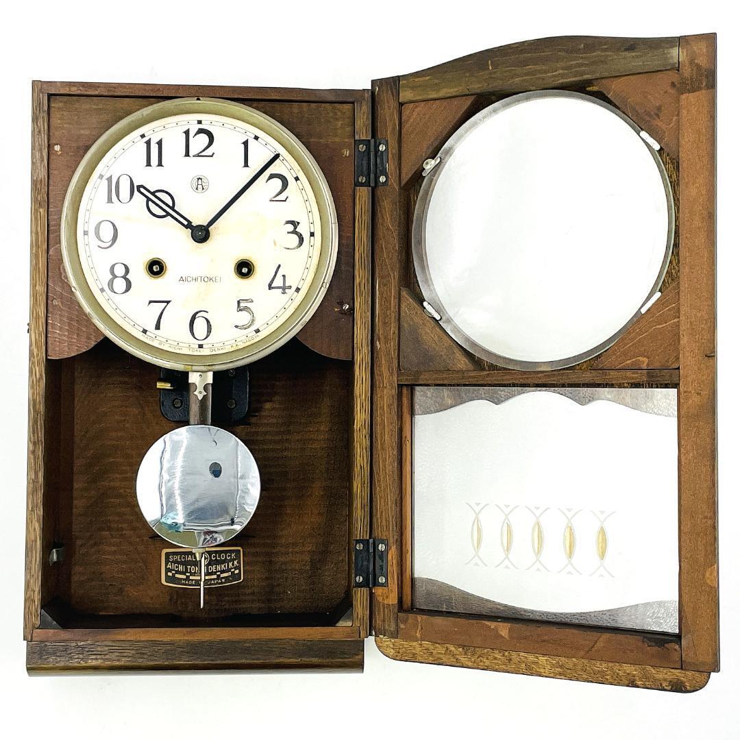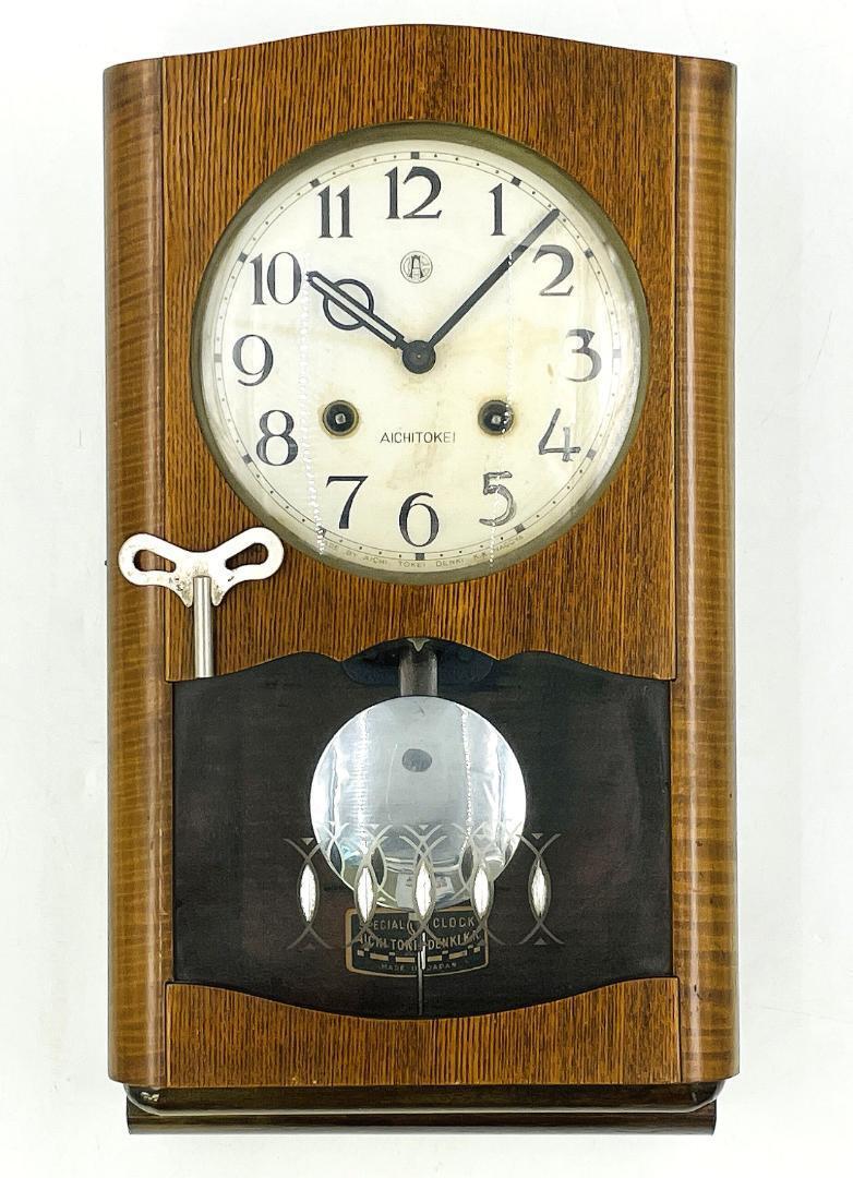 【希少 稼働品】愛知時計 No.2345 木製 柱 振り子 掛時計 ボンボン ゼンマイ式 ビンテージ 昭和レトロ アンティーク