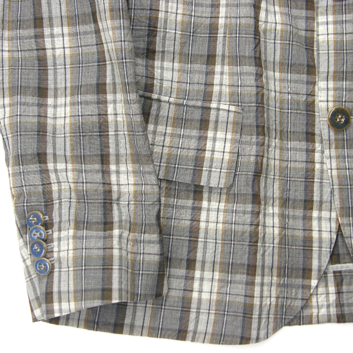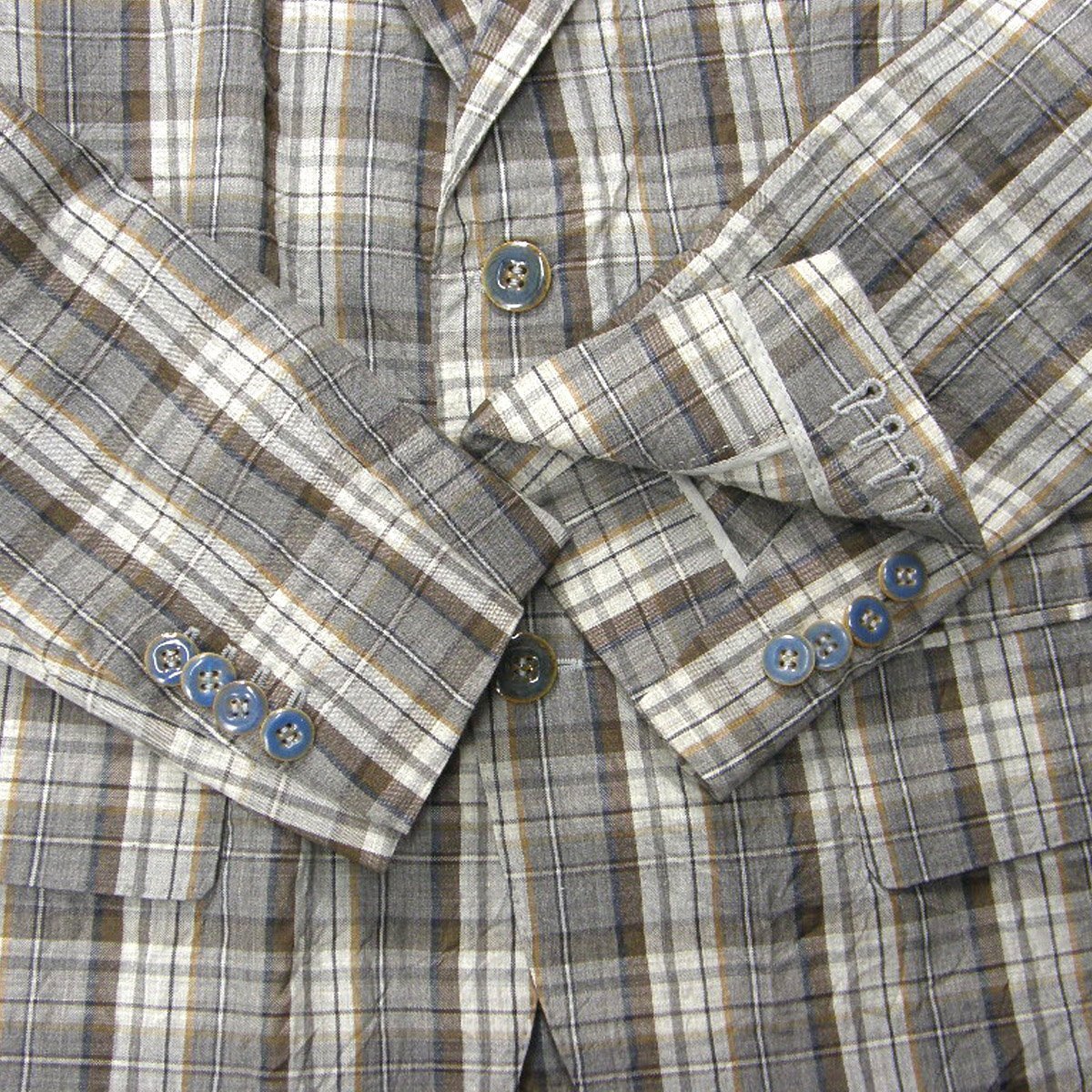 ・シワ加工生地 ・フロントは2ボタンシングル ・表ポケット3つ ・袖口は4ボタン本切羽 ・内ポケット1つ ・センターベント |