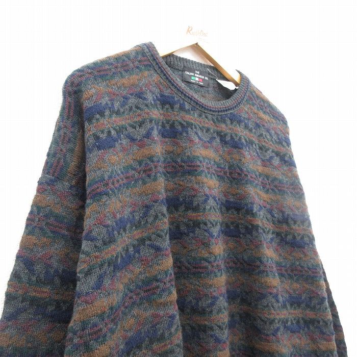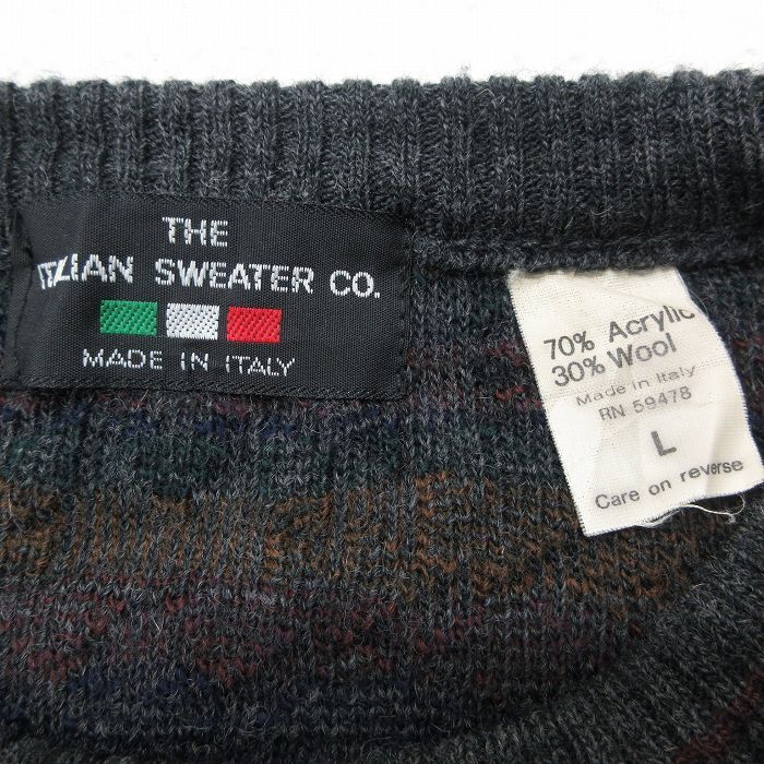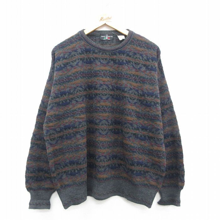 【商品名】 XL★古着 長袖 セーター メンズ 90年代 90s 大きいサイズ クルーネック イタリア製 グレー他