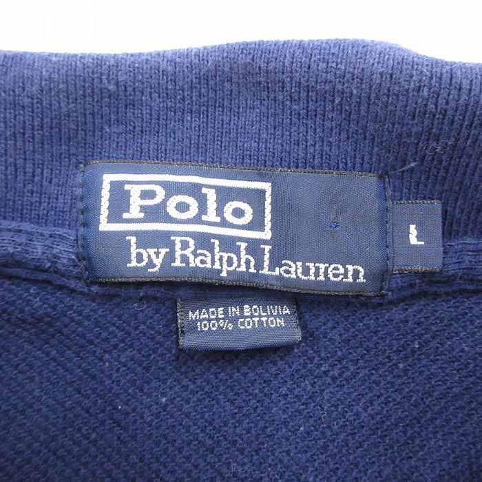 【商品名】 XL★古着 ラルフローレン 半袖 ブランド ポロ シャツ メンズ 90年代 90s ワンポイントロゴ 鹿の子 コットン 紺他 ボーダー