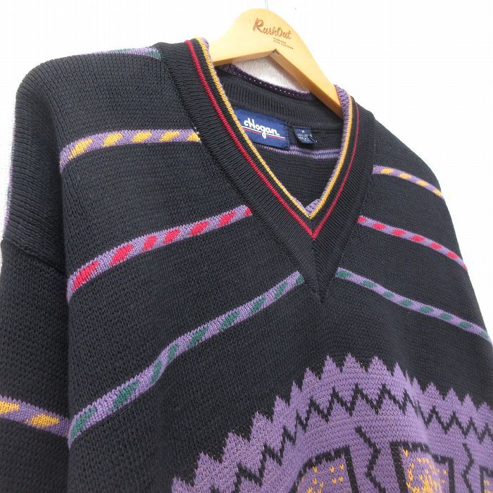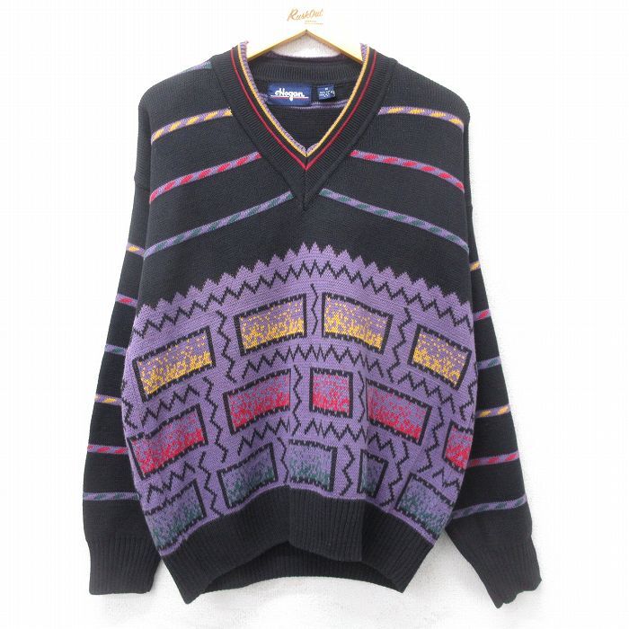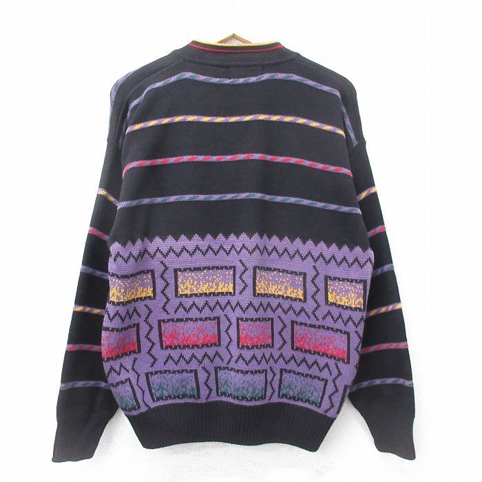 【商品名】 XL★古着 長袖 セーター メンズ 90年代 90s 大きいサイズ コットン Vネック 黒他