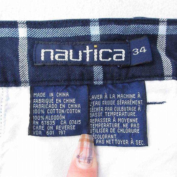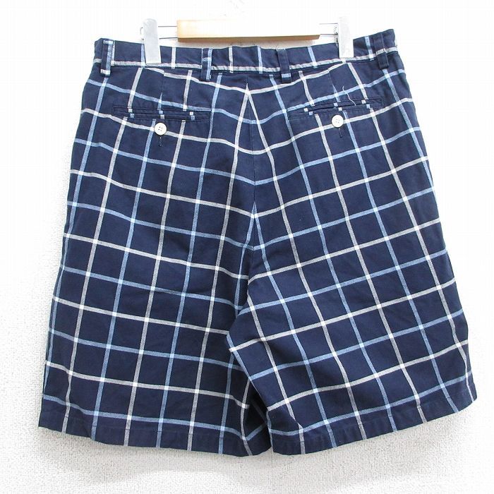 【商品名】 W33★古着 ノーティカ ブランド ショート パンツ ショーツ ショーツ メンズ 90年代 90s コットン 紺他 チェック