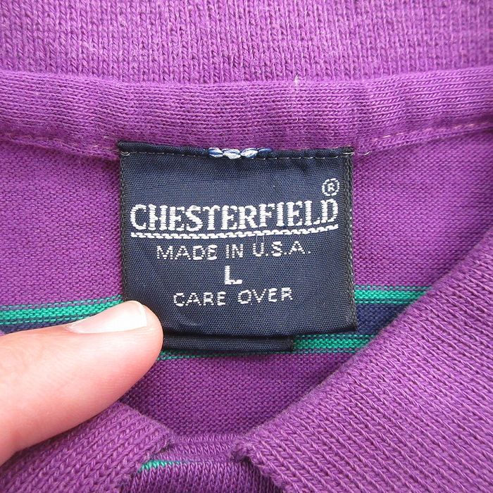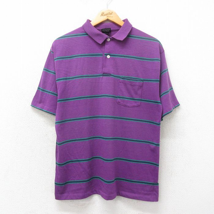 【商品名】 L★古着 半袖 ポロ シャツ メンズ 90年代 90s USA製 紫他 ボーダー