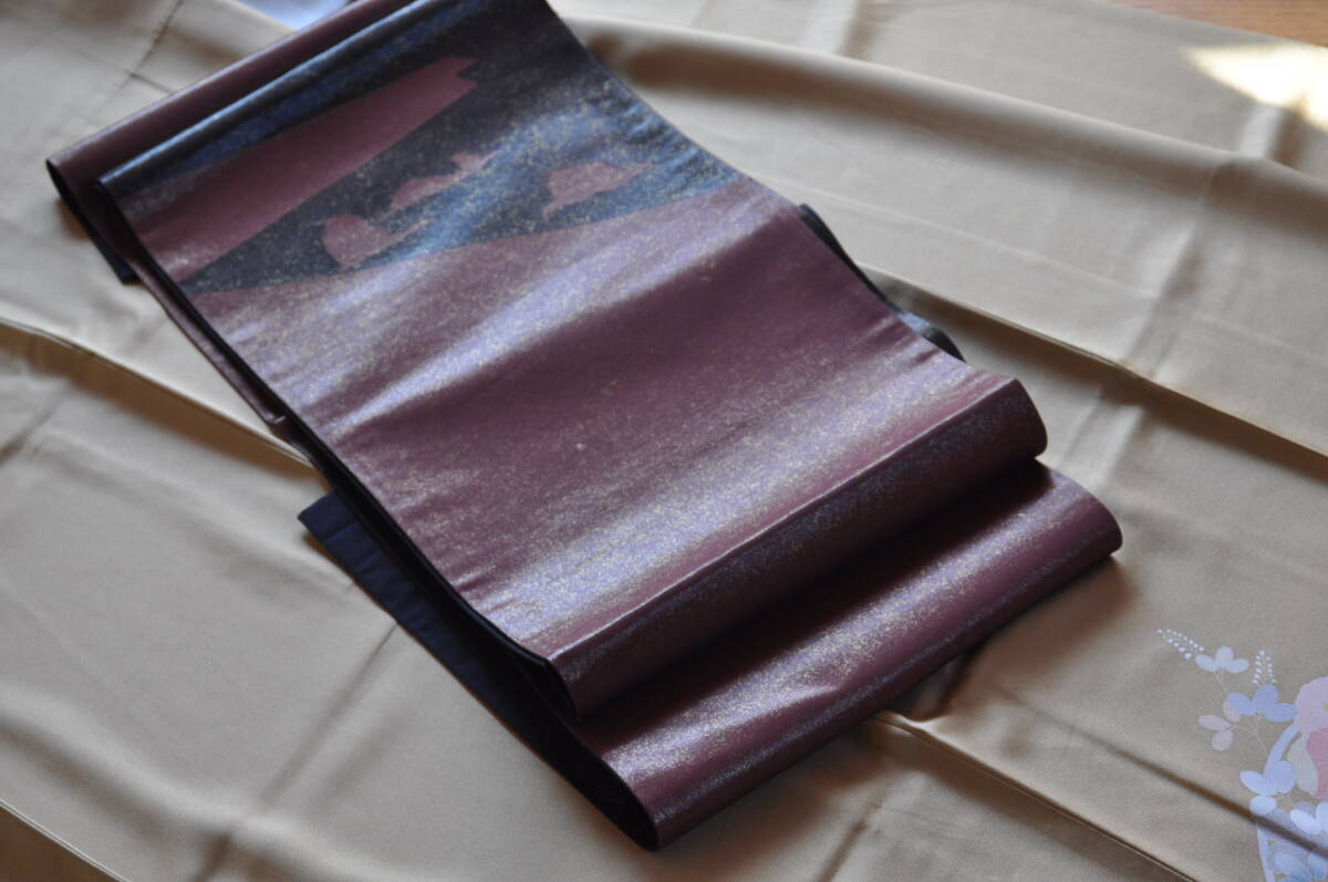 帯はこちらの訪問着と合わせて誂えました本金箔に漆を使用した極上の手織りの帯です!シックですが別格の存在感のある帯で着物と