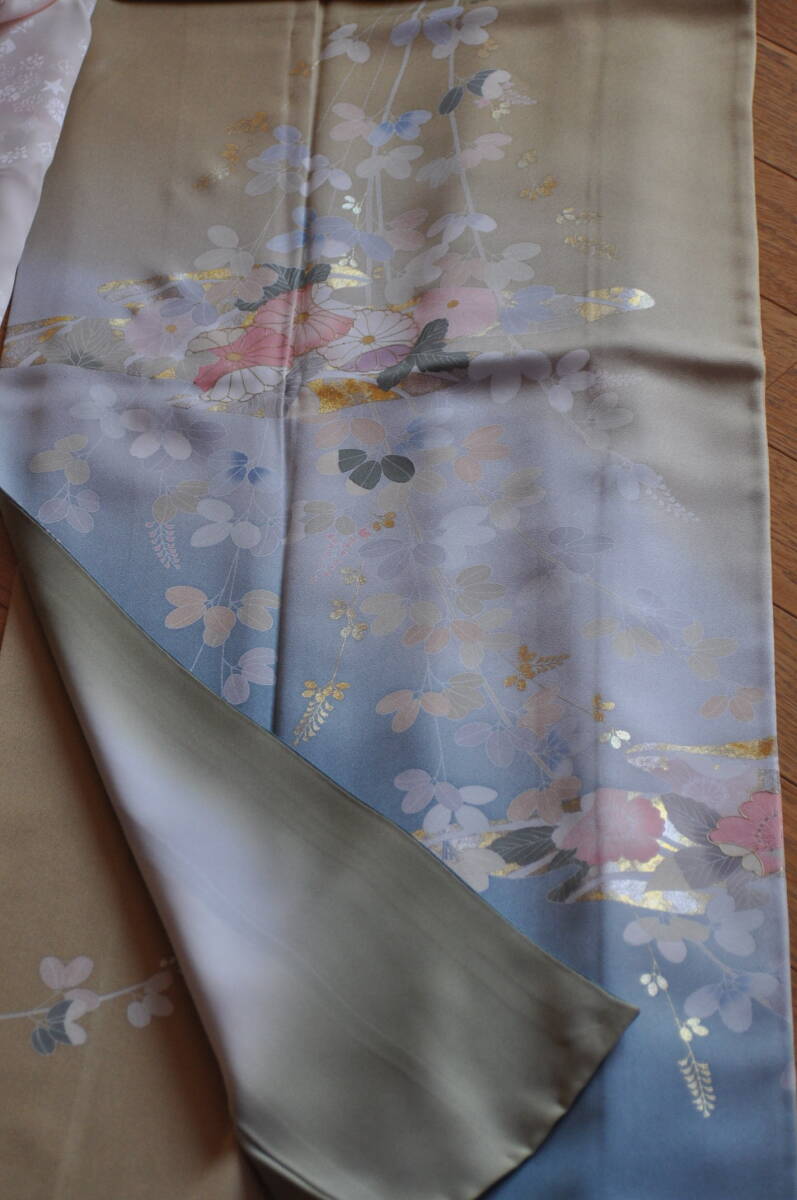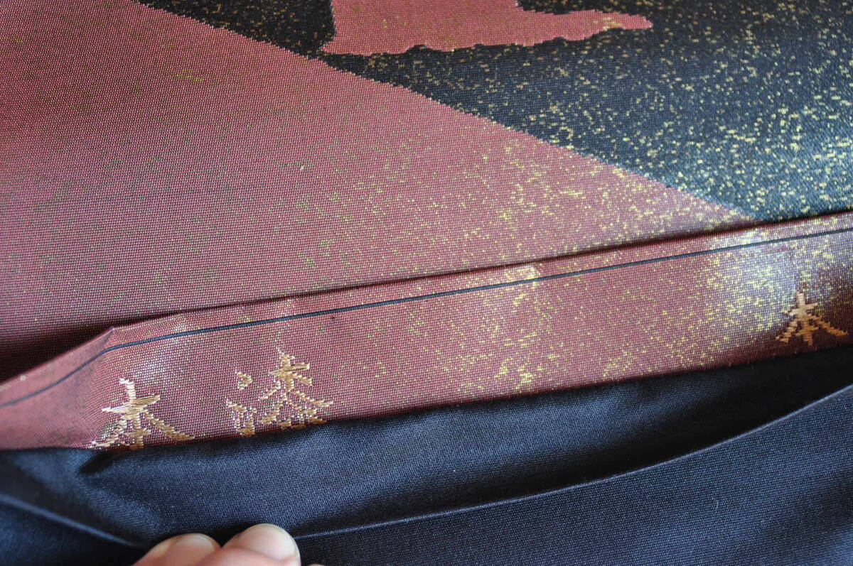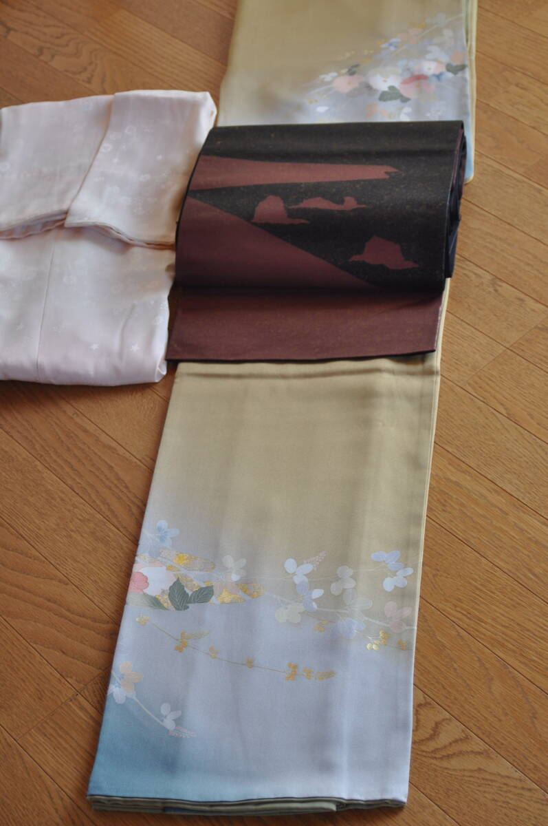 長期保管箪笥整理品安価で!きし屋誂え!極上手描き友禅試着のみ&少々シミあり共長じゅばん&本金箔漆極上袋帯3点セット