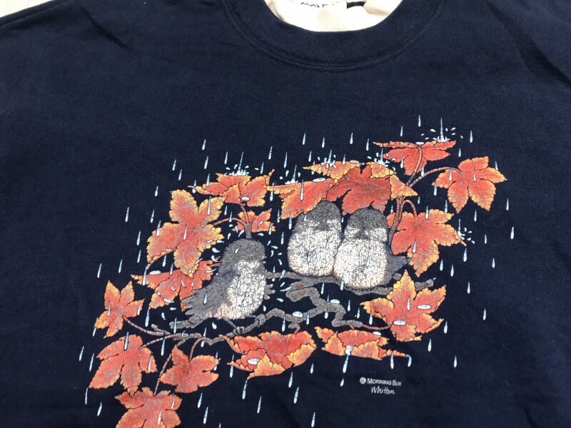 USA製 MORNING SUN JERZEES モーニングサン ジャージーズ オールド カントリー 90s 花鳥プリント スウェット トレーナー レディース XL 紺 です。