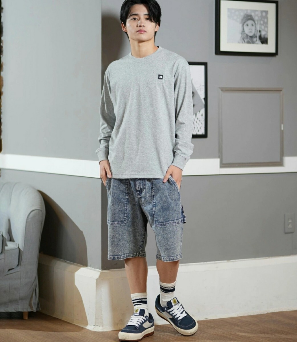 ☆左胸に配置した小さなスクエアロゴがアクセント。