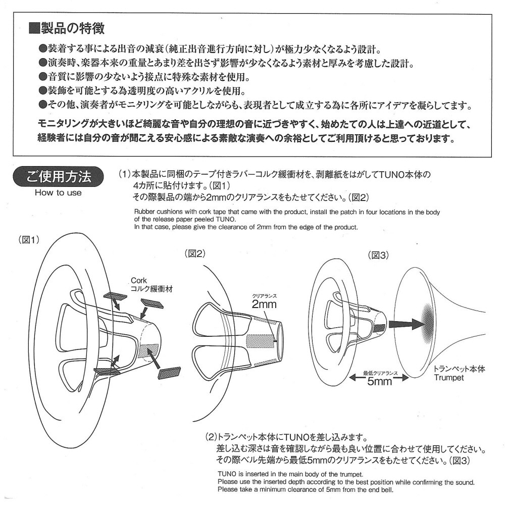 同梱内容:TUNO本体、テープ付きラバーコルク、保証書、取扱説明書、当店ロゴステッカー