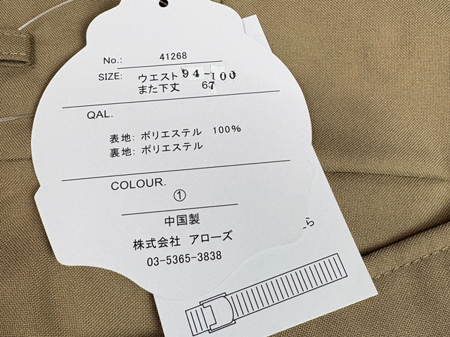 | 素材 | 表地:ポリエステル100% 裏地:ポリエステル |