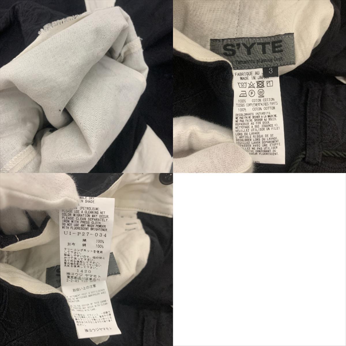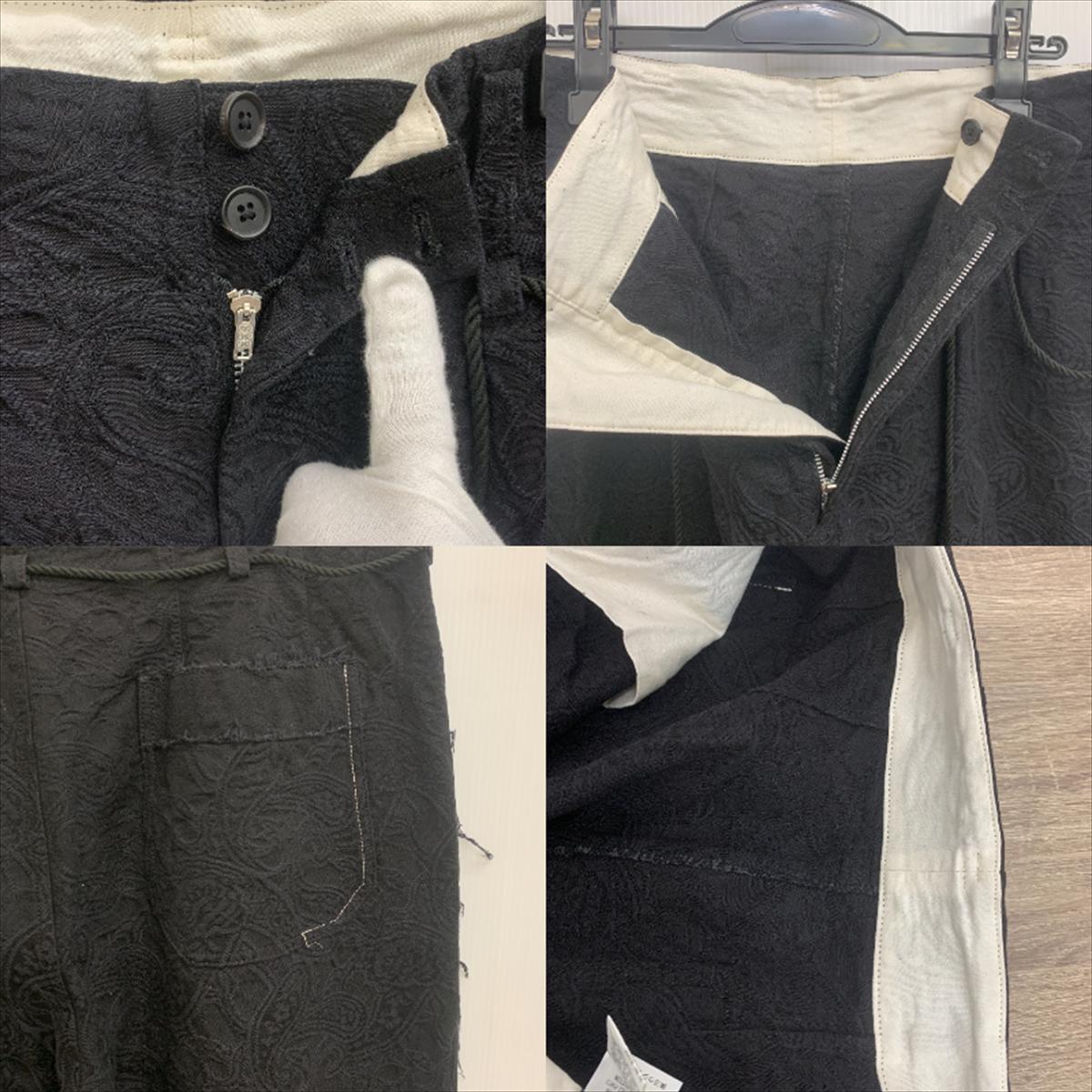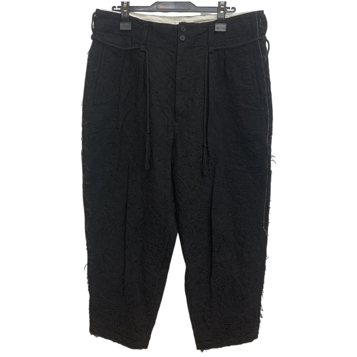 商品名 | S'YTE サイトバイヨウジヤマモト UI-P27-034 PAISLEY PATTERN JACQUARD CUT-OUT DESIGN TASSEL STRING 2-TUCK PANTS サイズ:3 ブラック |