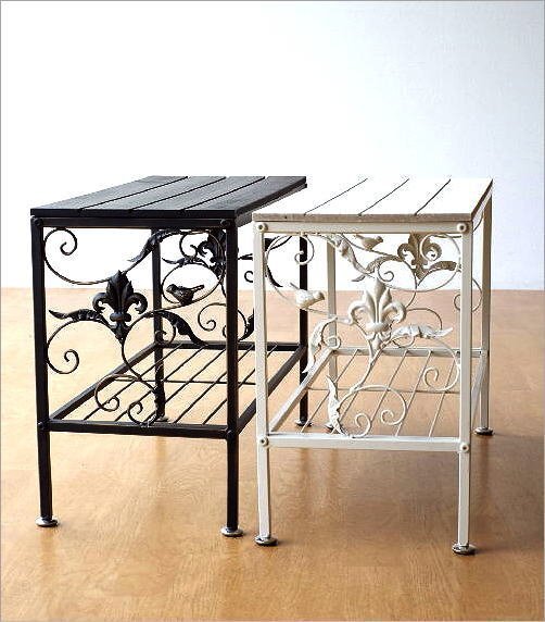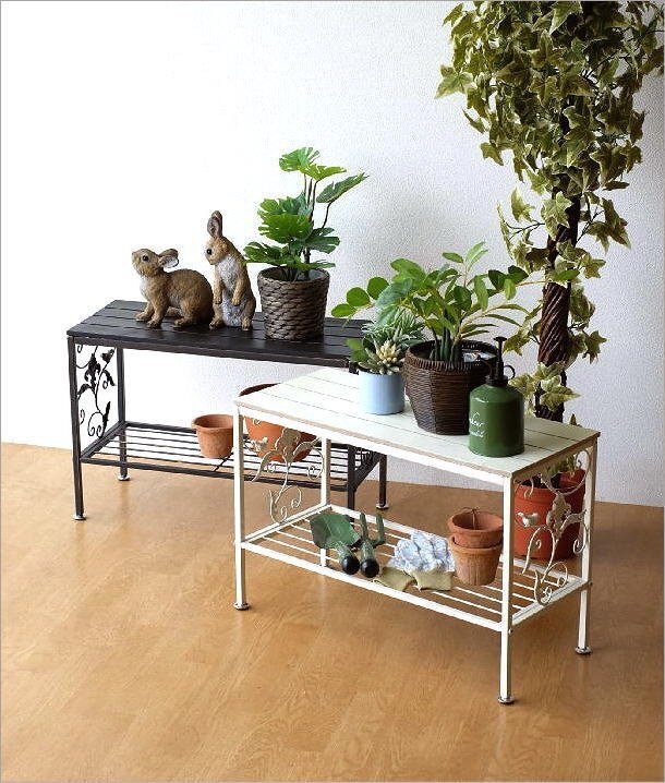 | こちらのページでは【Aカラー】のみの販売です アイアンの優美なアラベスクラインに フルール・ド・リスがポイントになった エレガントな雰囲気の棚付きオープンラック 蔓先に広がるリーフに 呼ばれるようにやってきたふっくらした小鳥は まるで美しい景色を楽しんでいるよう・・・ ウッドテーブルの下には すのこ状の棚がついていて 玄関先で花鉢や履物を置いたり ショップのディスプレイラックにも。 商品名 : アイアンの棚付き花台 商品番号 : pic2504 全体のサイズ(cm) : 幅61×奥行26.5×高さ41.5 天板サイズ : 幅61×奥行26×厚み1 床からの高さ : 12.5 重量 : 4kg 材質 : アイアン MDF 他 生産国 : 中国 ※完成品です ※メーカーより耐荷重は公表されておりません ※がたつきを調整するアジャスター付きです ※色ムラやサビ加工、小傷や塗装剥げによりアンティークな風合いを表現した商品です ※天板の反りや傾きが見られる場合があります ※ディスプレイによる色の違いはご了承下さい |