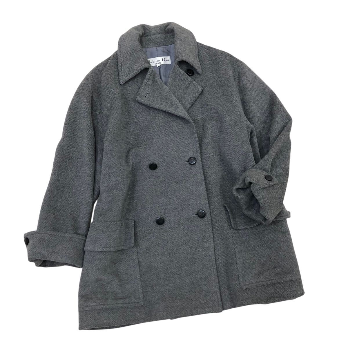 9m655-39 Christian Dior SPORTS クリスチャン ディオール スポーツ ダブルブレスト コート ヘリンボーン 柄 アウター グレー レディース M