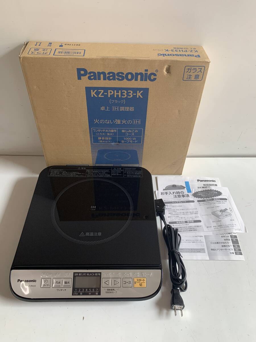 Panasonic パナソニック 卓上IH調理器 IHクッキングヒーター 一口 KZ-PH33-K ブラック/黒 2019年製 静音設計 美品 箱付 動作品 写真にあるのが商品すべてとなります。 *その他の付属品はございません。 ◆商品状態◆ こちらの商品は代理出品となります。 動作良好です。現状で使用いただけます。 初期不良があった場合は返金にて対応いたします。 商品の返送→確認→返金という流れになります。 現状使用できていても、保管中、輸送中に故障する可能性はございます。 上記内容でご了承の上入札ください。 未使用保管品と思われます。 外箱に直接送り状を貼って発送する場合がございます。 外箱は梱包材とお考え下さい。 ご了承の上入札ください。 商品は1点物につき返品、交換できませんので、ご理解の上入札ください。 以上ノークレームでお願いします。 *記載内容と異なる場合はご連絡ください。 | ||||