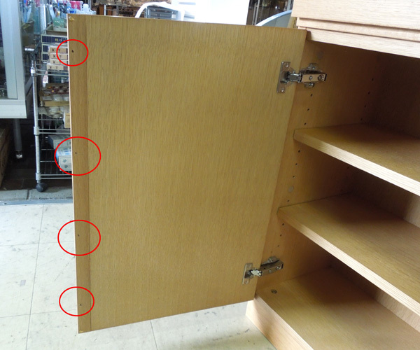 こちらはUSED品です。正面向かって左側の扉内部にネジ穴跡が4箇所あります。