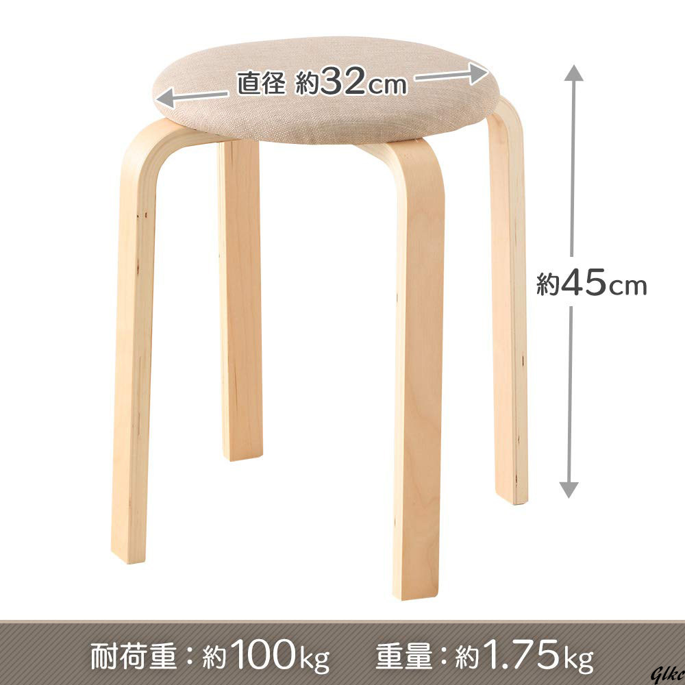 座面直径約32cm、高さ約45cmでダイニングやキッチン、玄関、オフィスの休憩スペースなど幅広く活用できます。