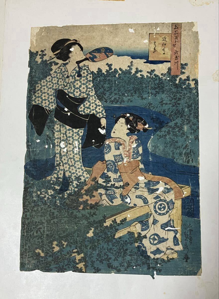 全体を台紙に糊付けされています。白く見えるところは穴が開いていて台紙が見えている状態です。