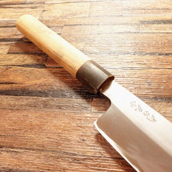尚台正吉 鎌薄刃包丁 研ぎ済 水牛柄 片刃 菜切り 205mm