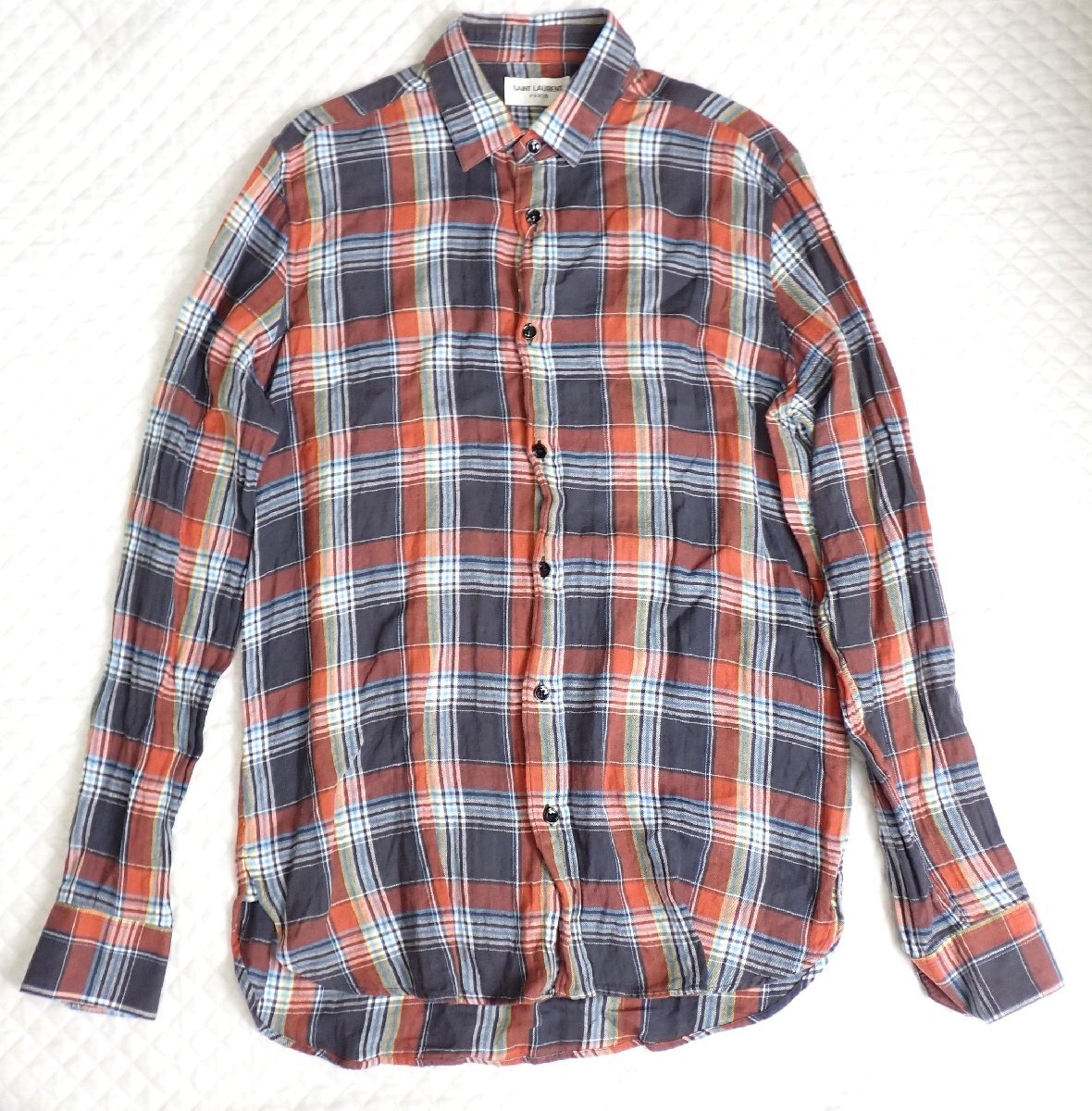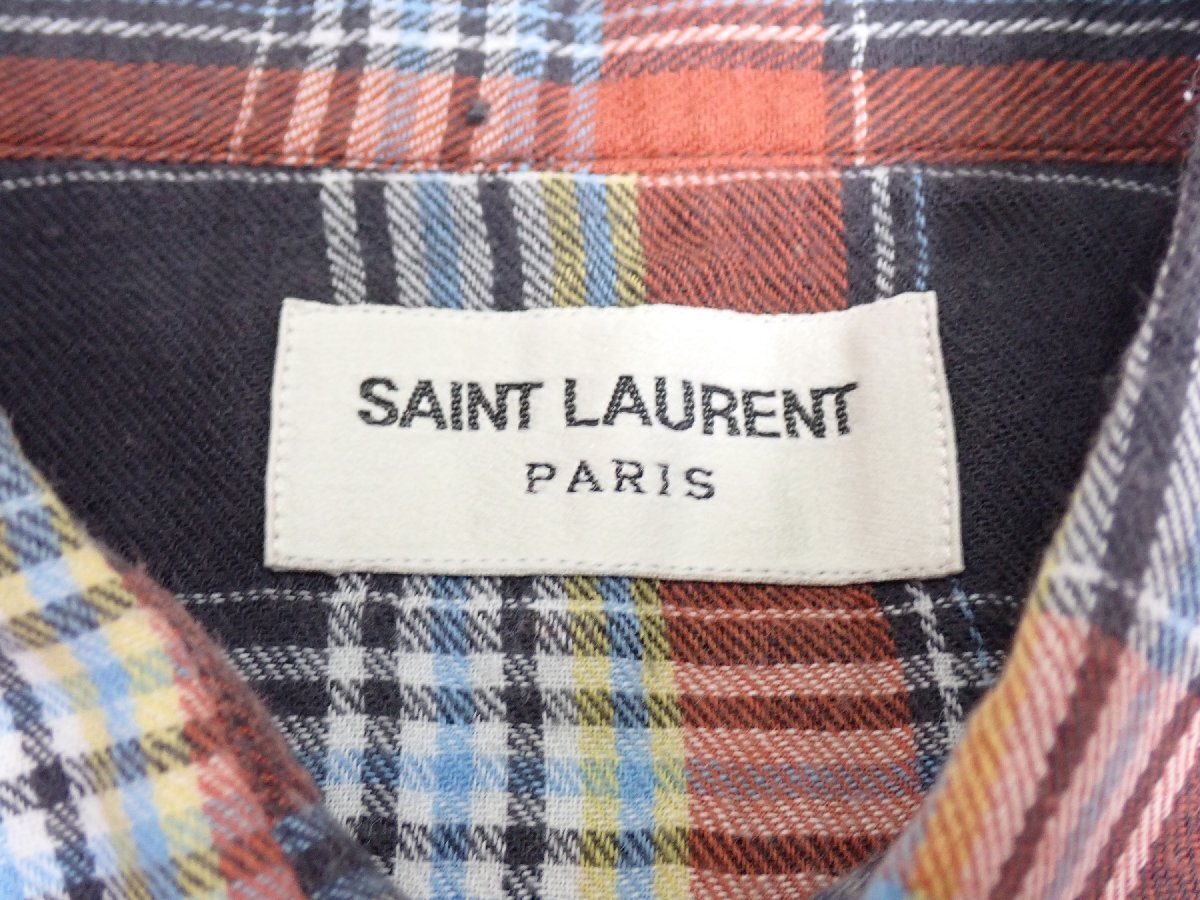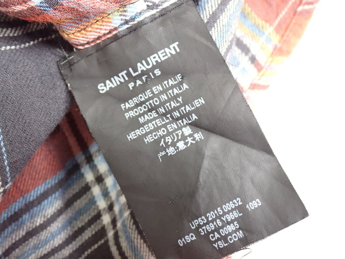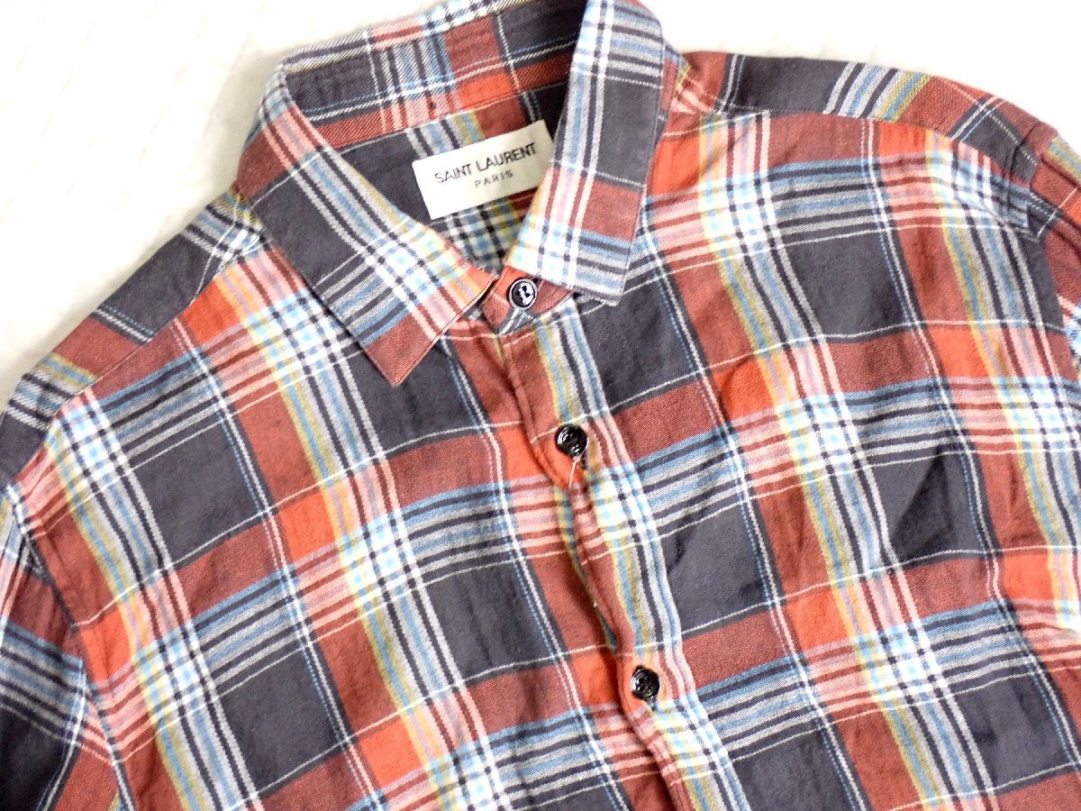 エディ期 定価9万円↑サンローラン パリ メンズ 376916 チェックシャツ ネルシャツ 38/15 ブラウン チェック ウエスタン 1855