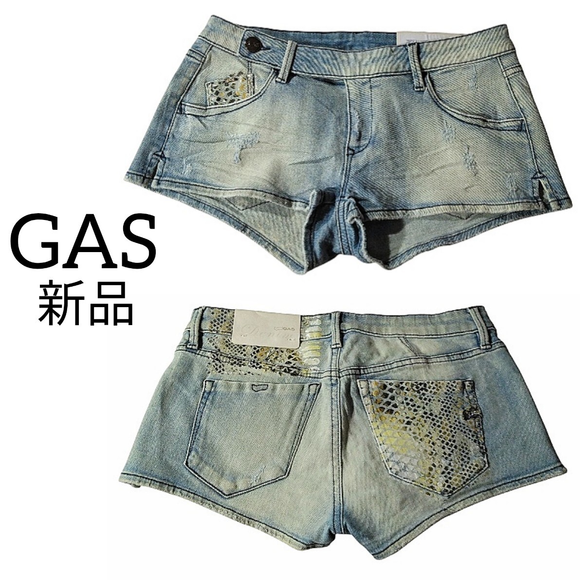 ウエストボタンなど所々にGASのロゴ入りです